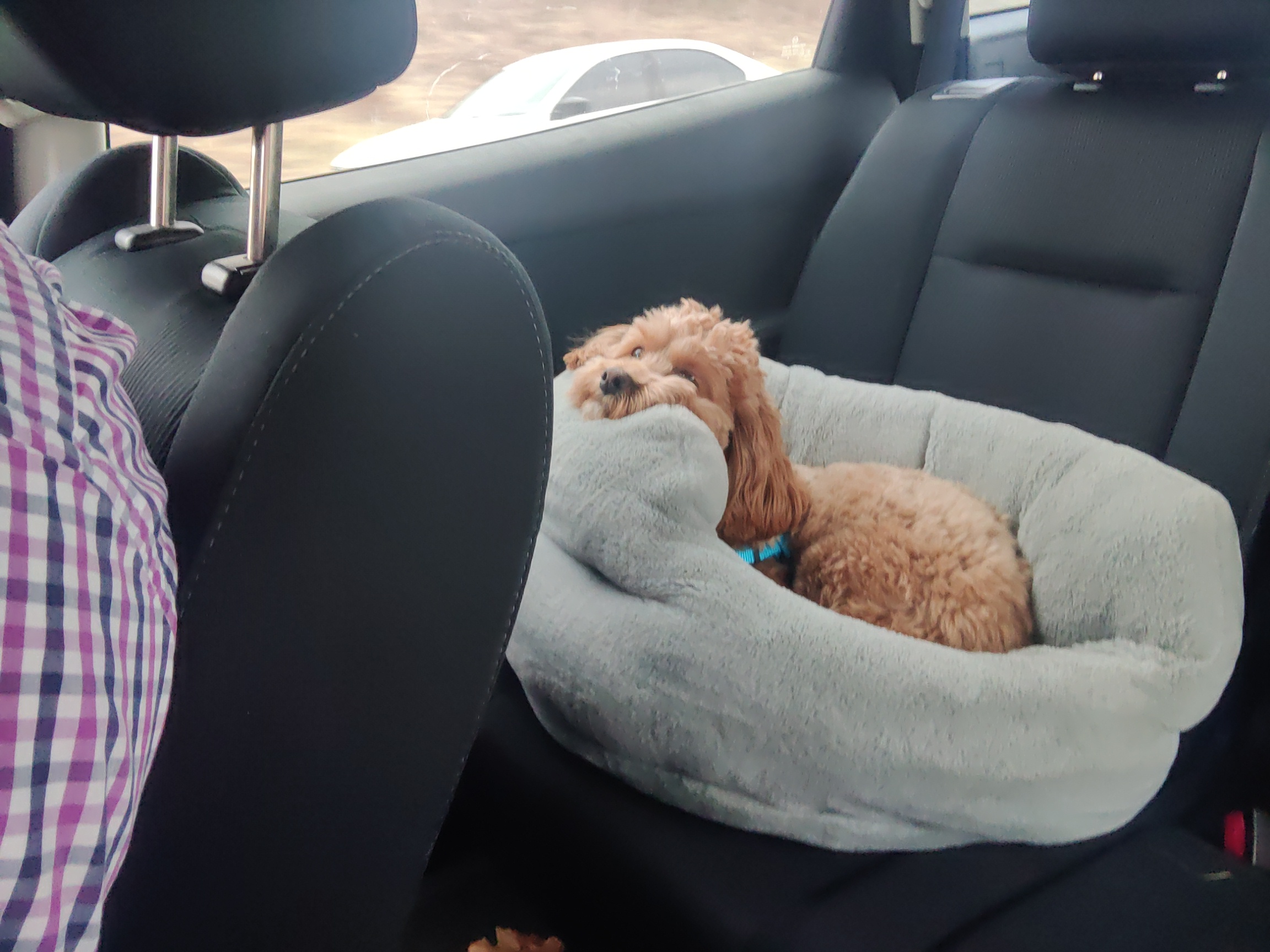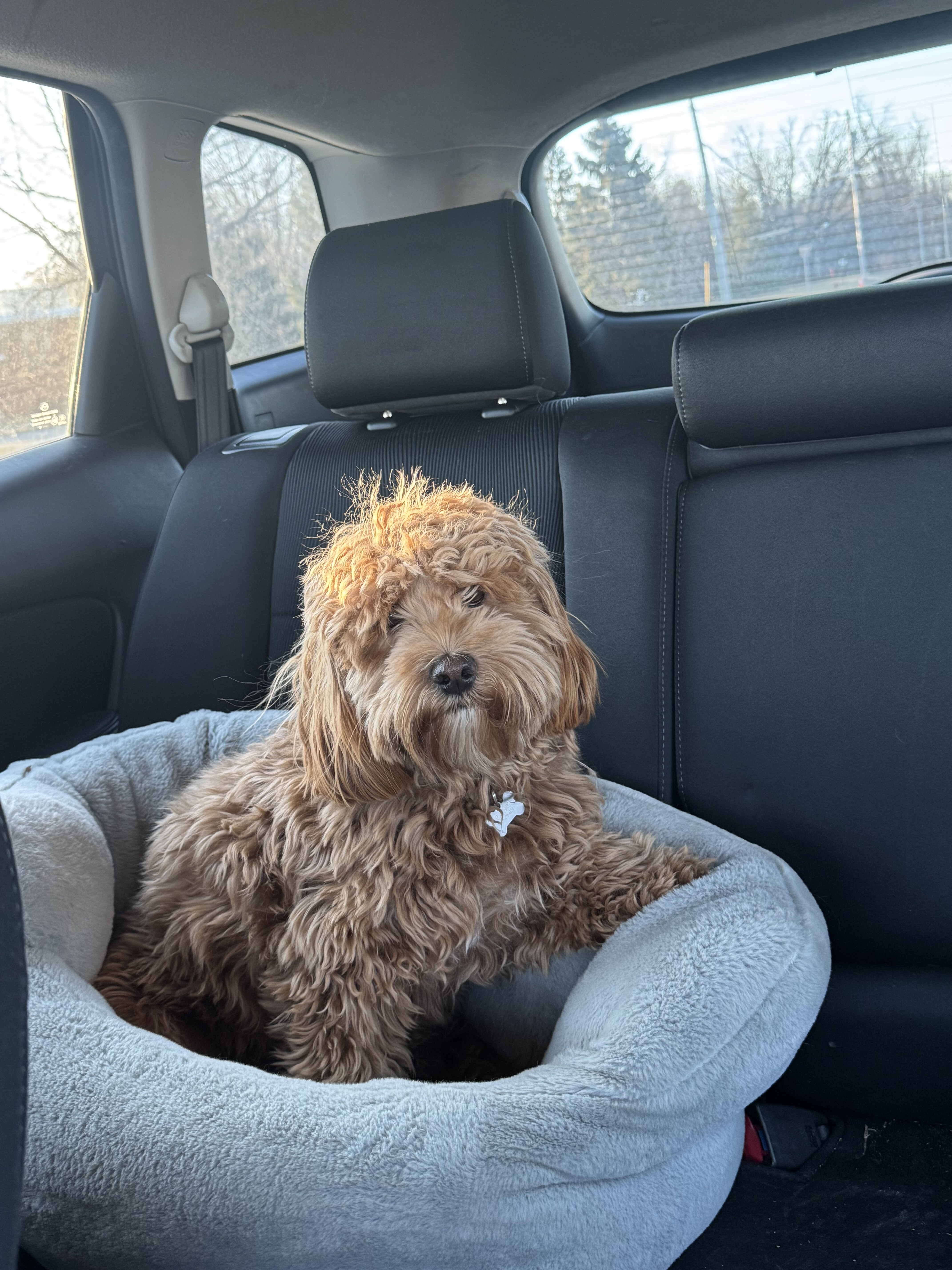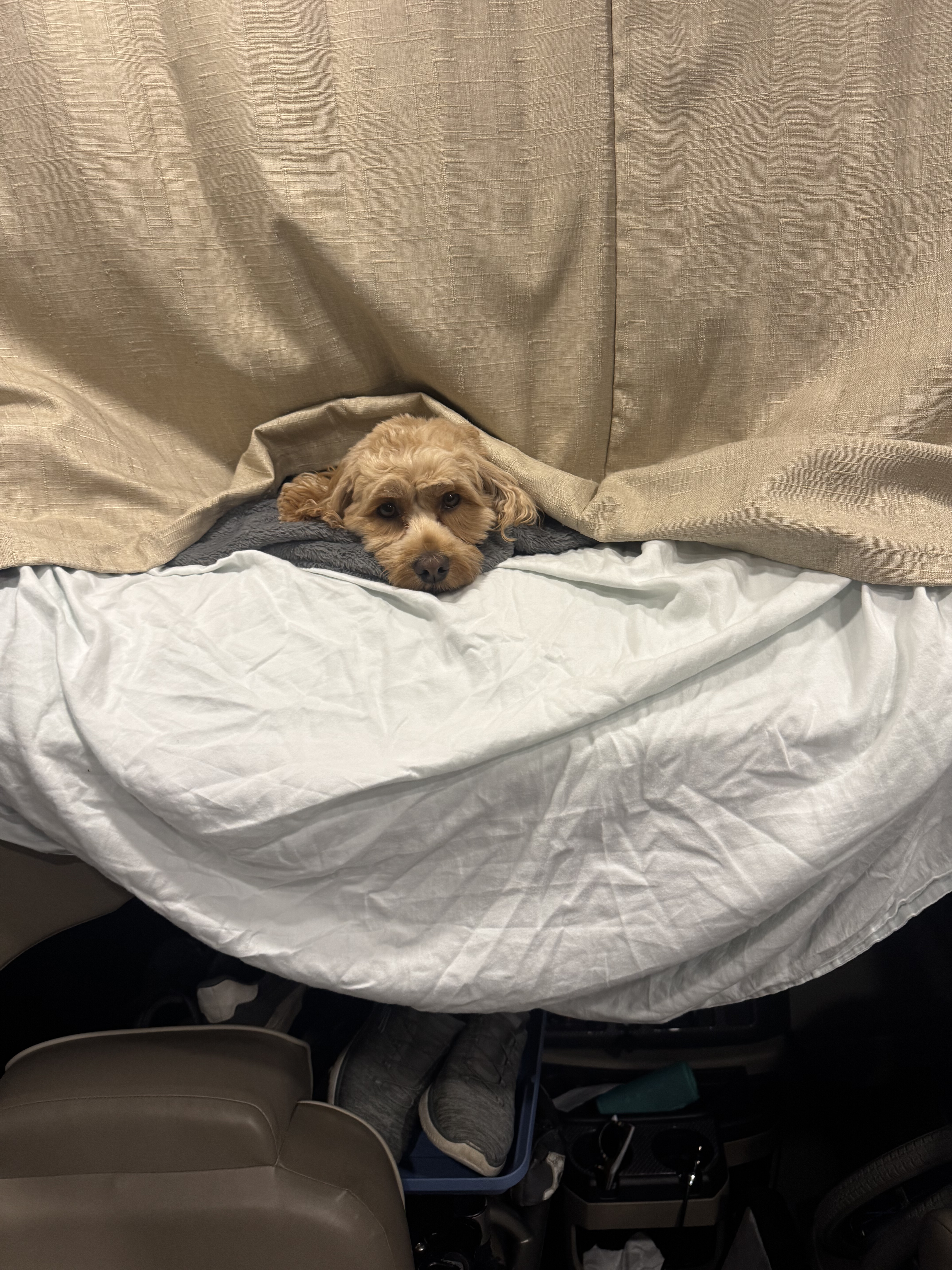 We drove all through the night on Thanksgiving into Friday to avoid a blizzard… this is Mabel in the morning after waking up with us every couple hours when we would stop for gas and driver changes.