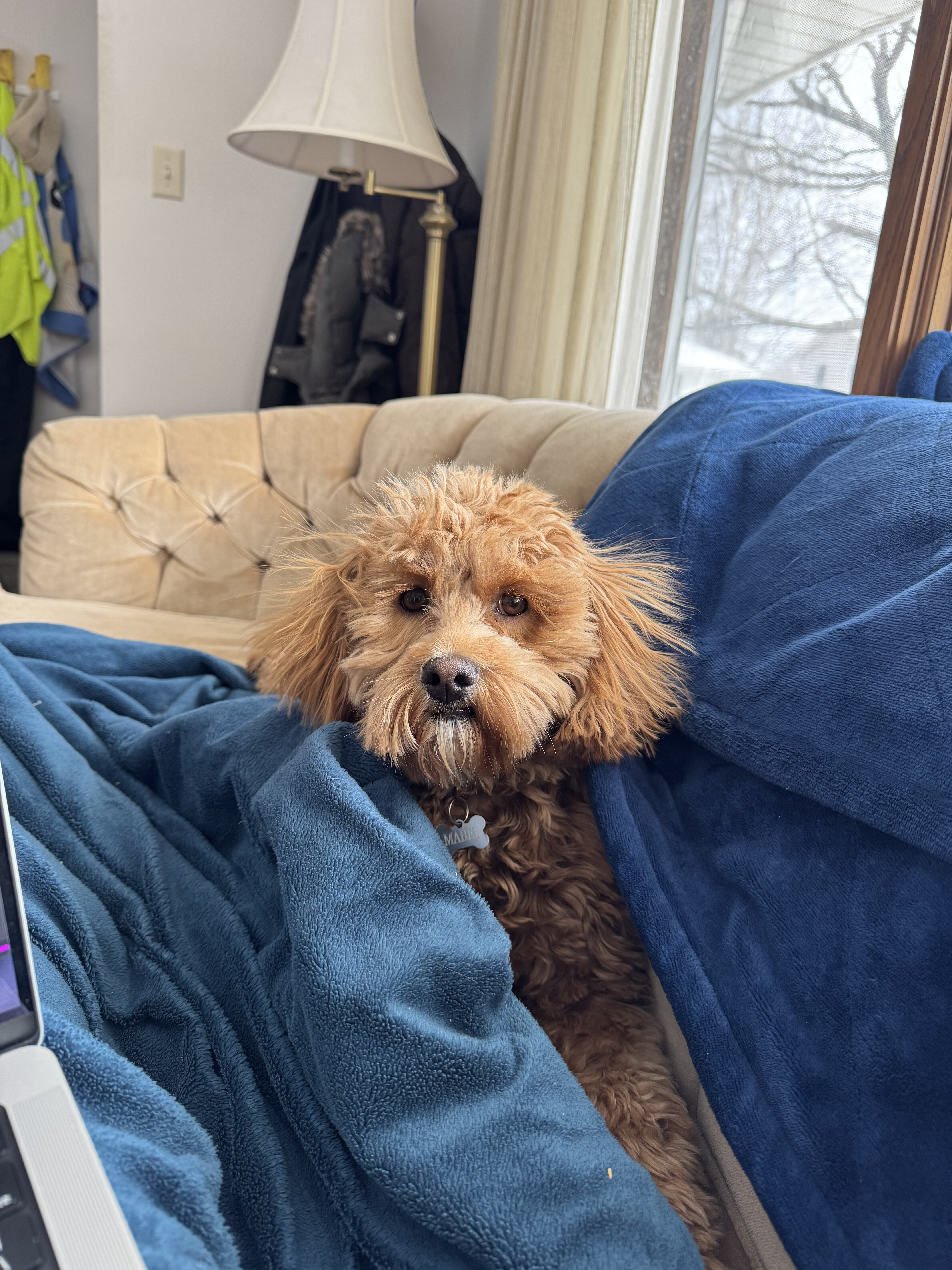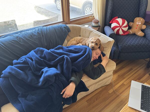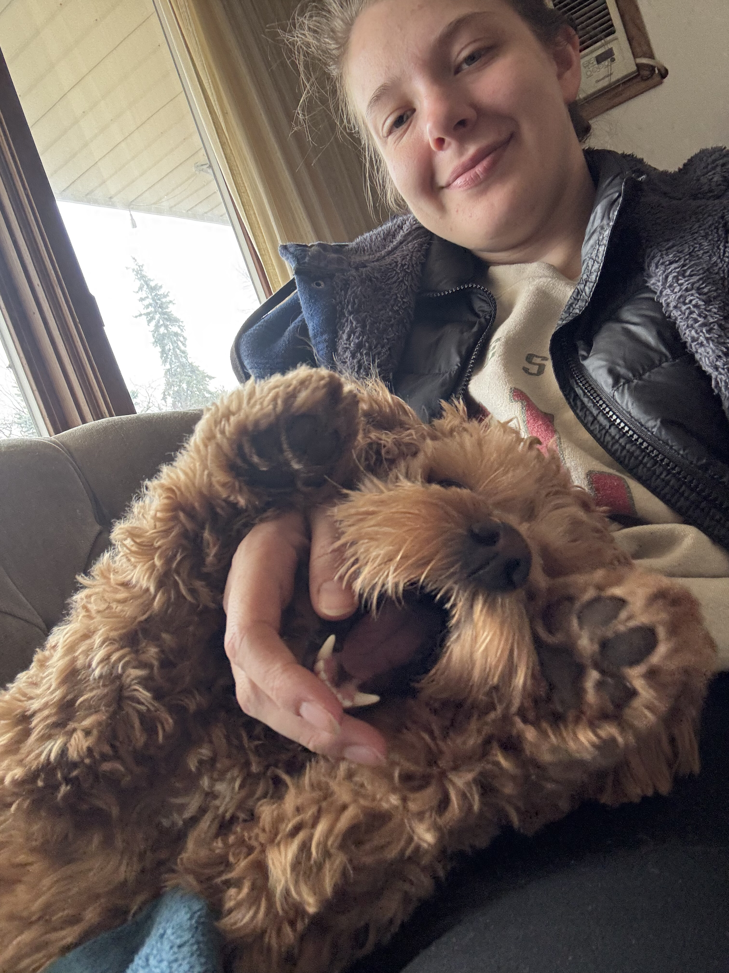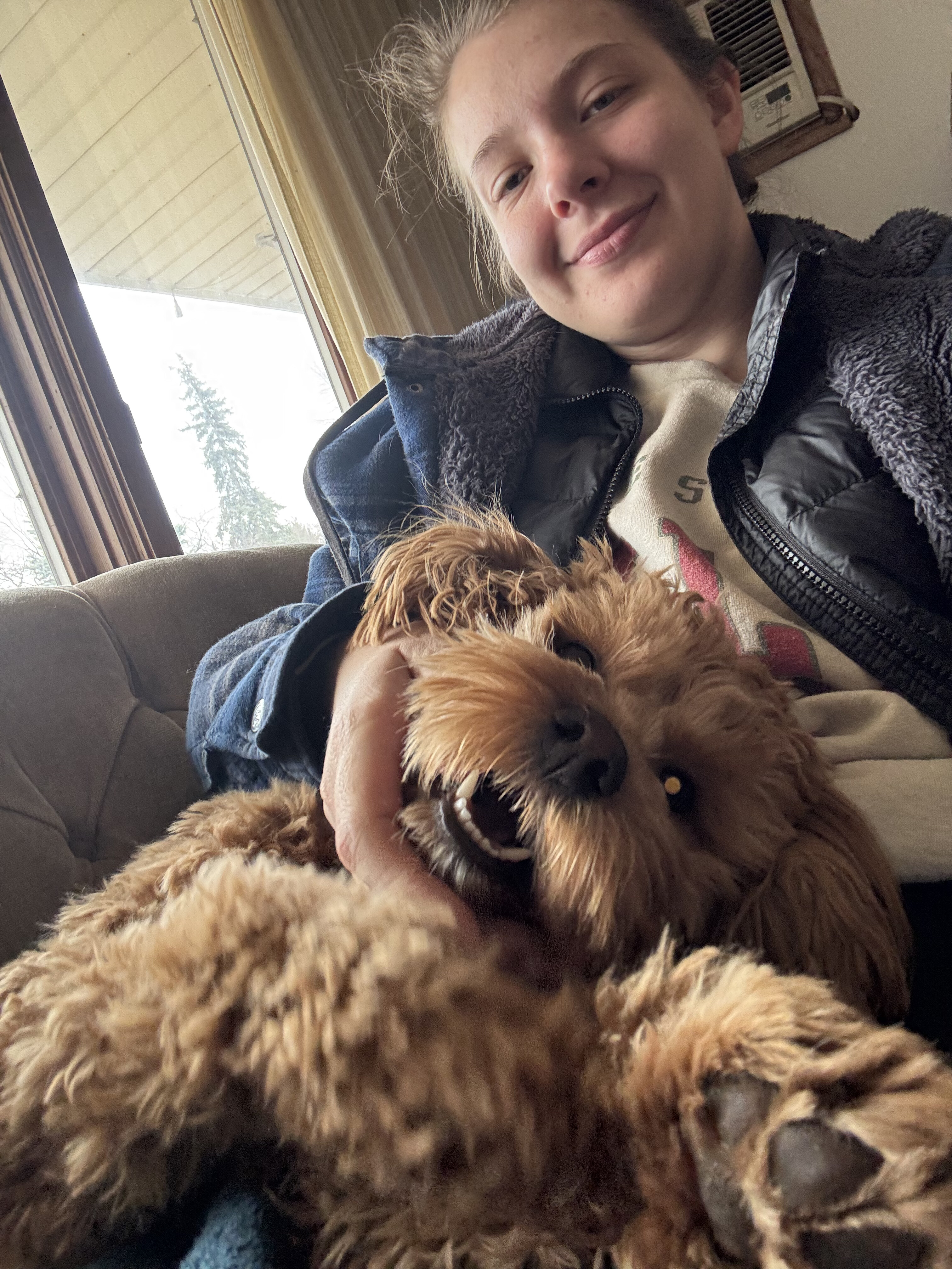 We drove all through the night on Thanksgiving into Friday to avoid a blizzard… this is Mabel in the morning after waking up with us every couple hours when we would stop for gas and driver changes.