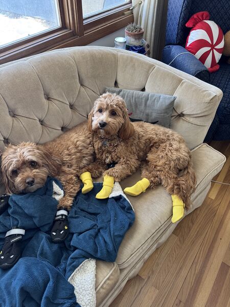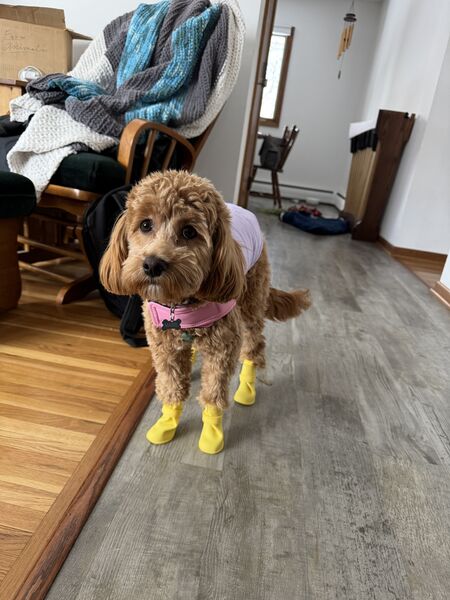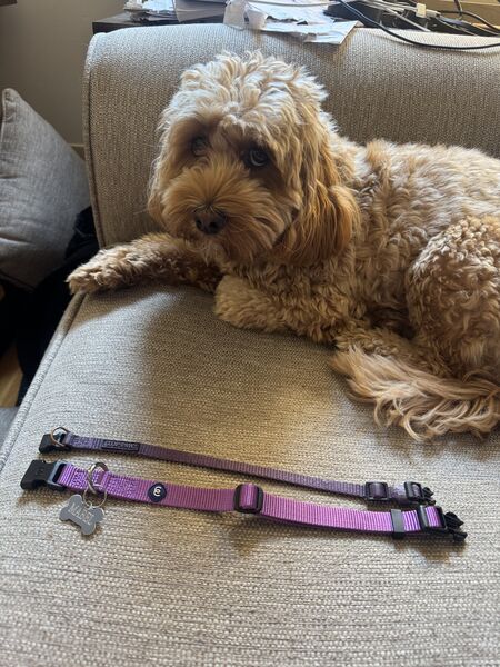 While Mabel didn’t technically outgrow her puppy collar, Käthe was a little concerned about her breaking it when going after squirrels so she got upgraded to a grownup collar!