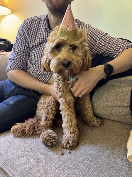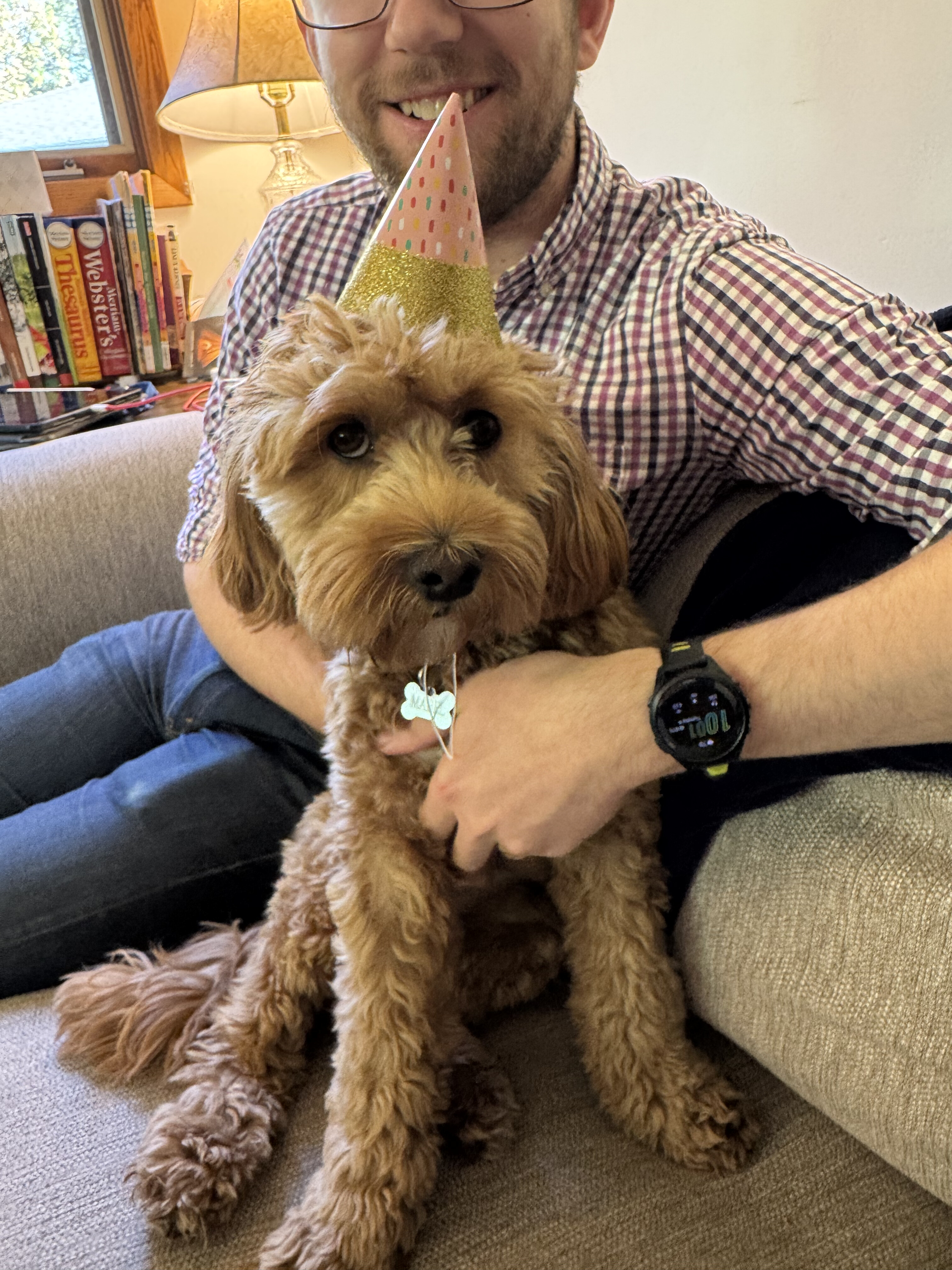 Mabel turned ONE in May! It was unclear to her why the hat was necessary. Rest assured, she wore the hat for approximately 45 seconds for photos before getting showered with treats and getting to have a sleepover with her BFF Bodhi and Käthe’s parents.