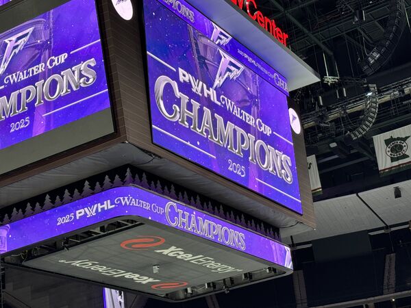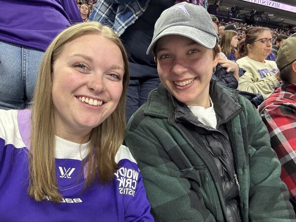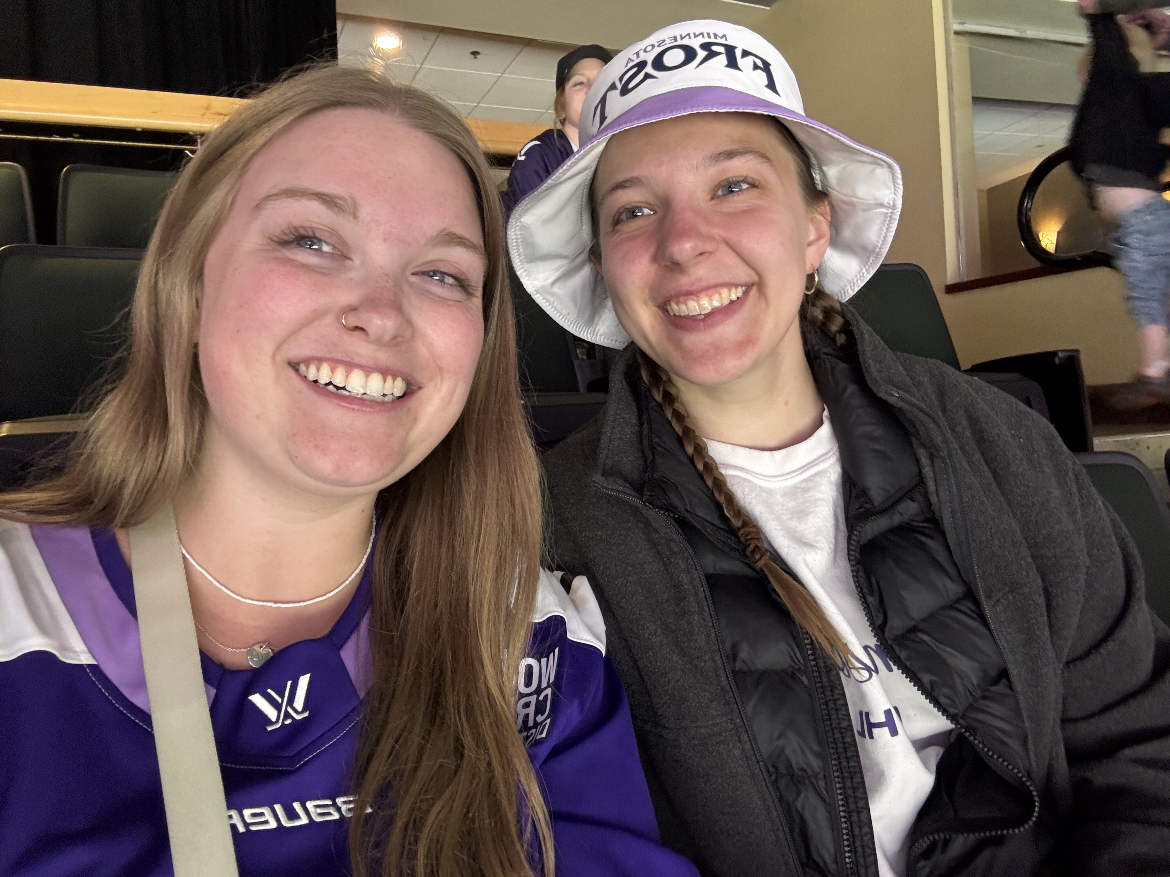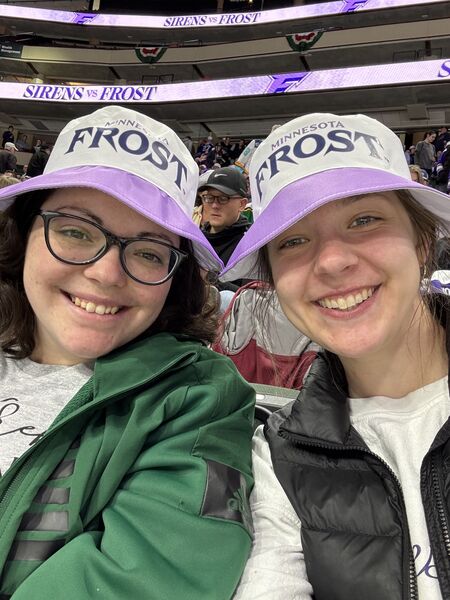 Claire and Käthe have a bad habit of going to hockey games where MN loses, as was the case at this Frost playoffs game.
