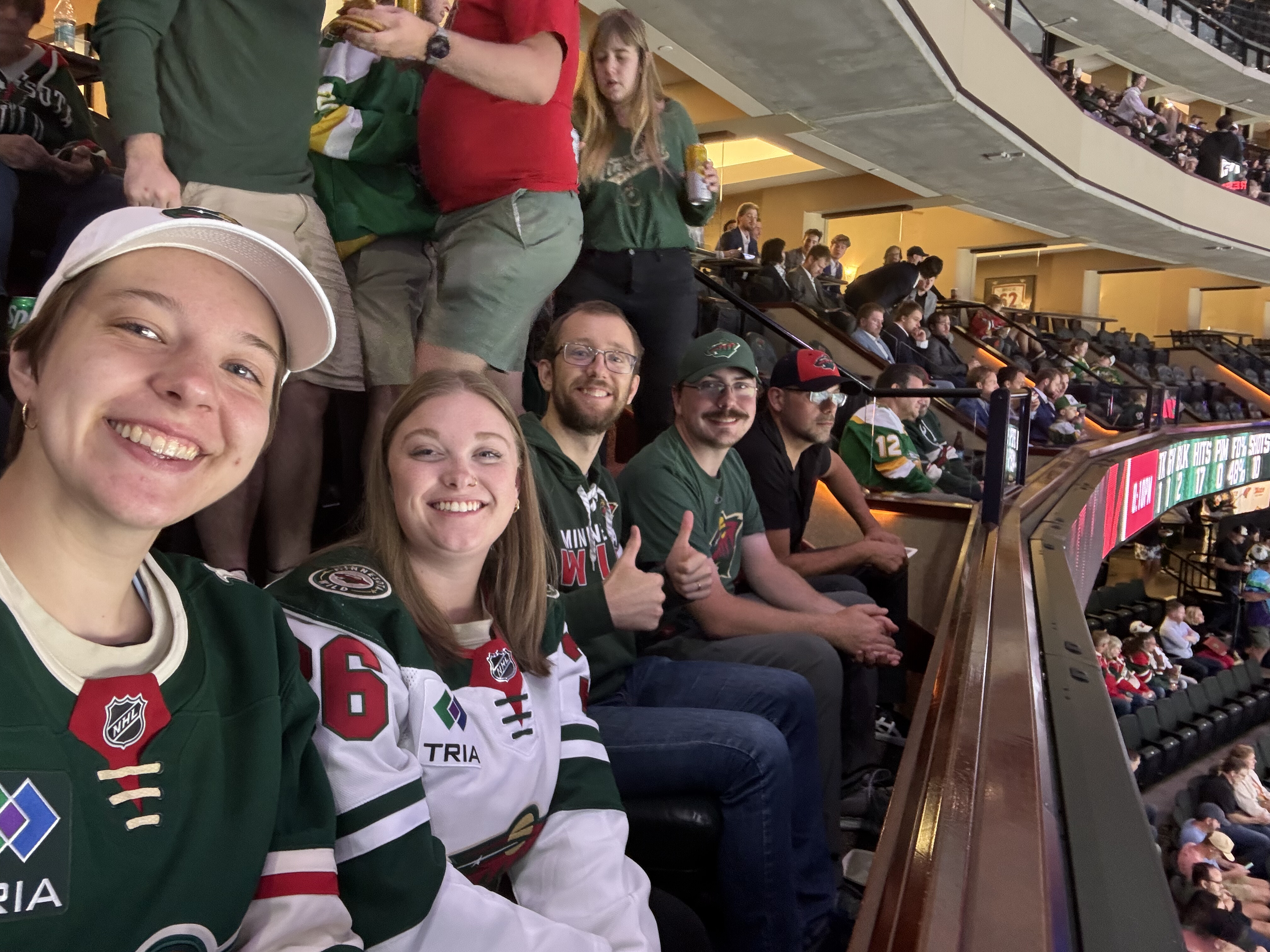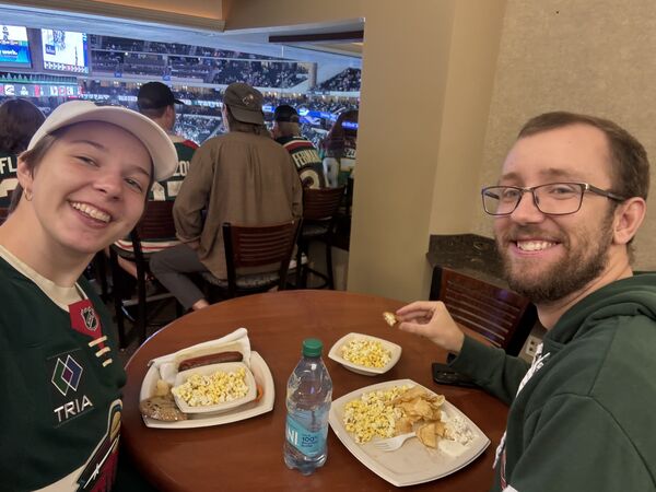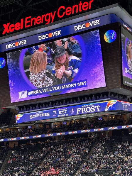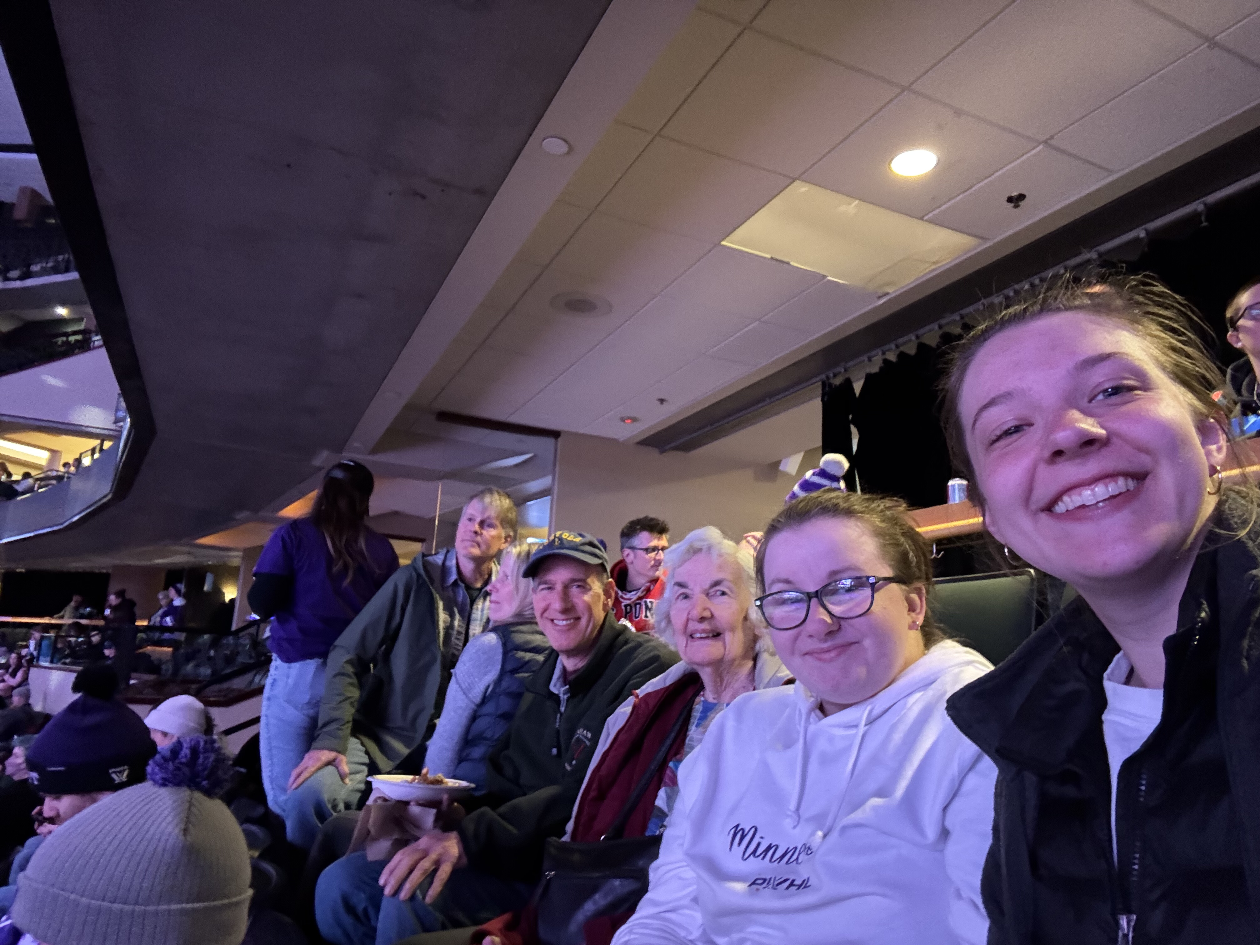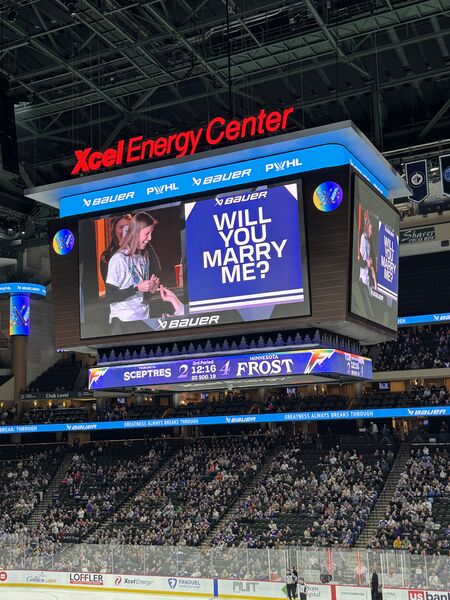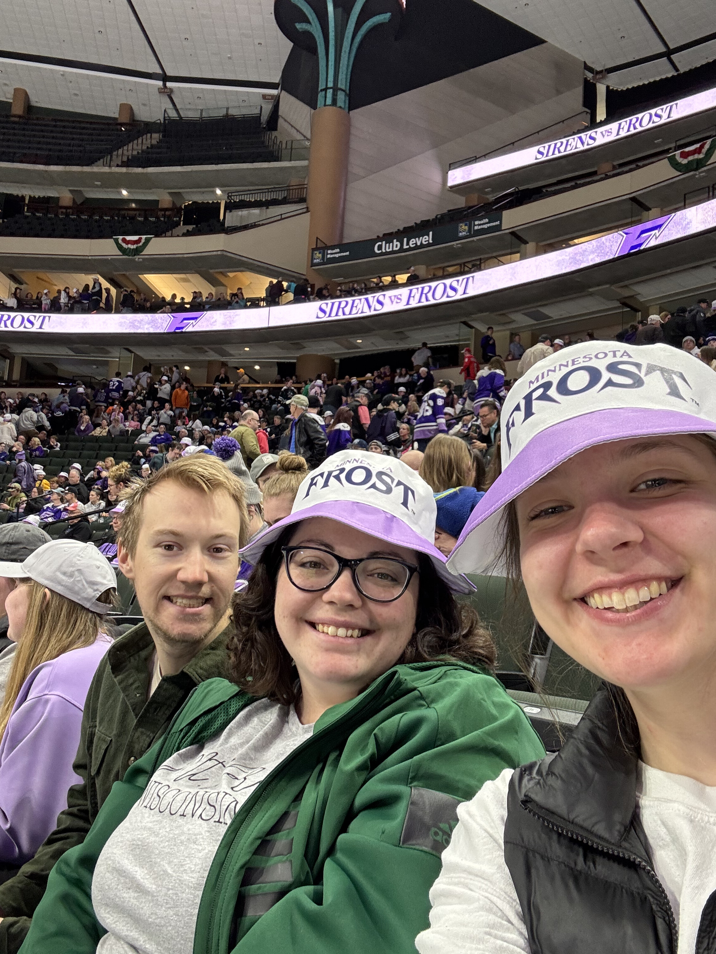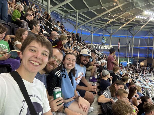 The past 3(ish?) years, Käthe has gotten quite into watching professional hockey, both the men’s team (MN Wild) and the women’s team (MN Frost). She now makes it her mission to pull anyone else she can into the fold and has succeeded on a few accounts as seen here with Ted (dad), Grandmoms (Ted’s mom), and Natalie (sister-in-law). This particular game was the pride game and we got to see 3 proposals and a Frost win!