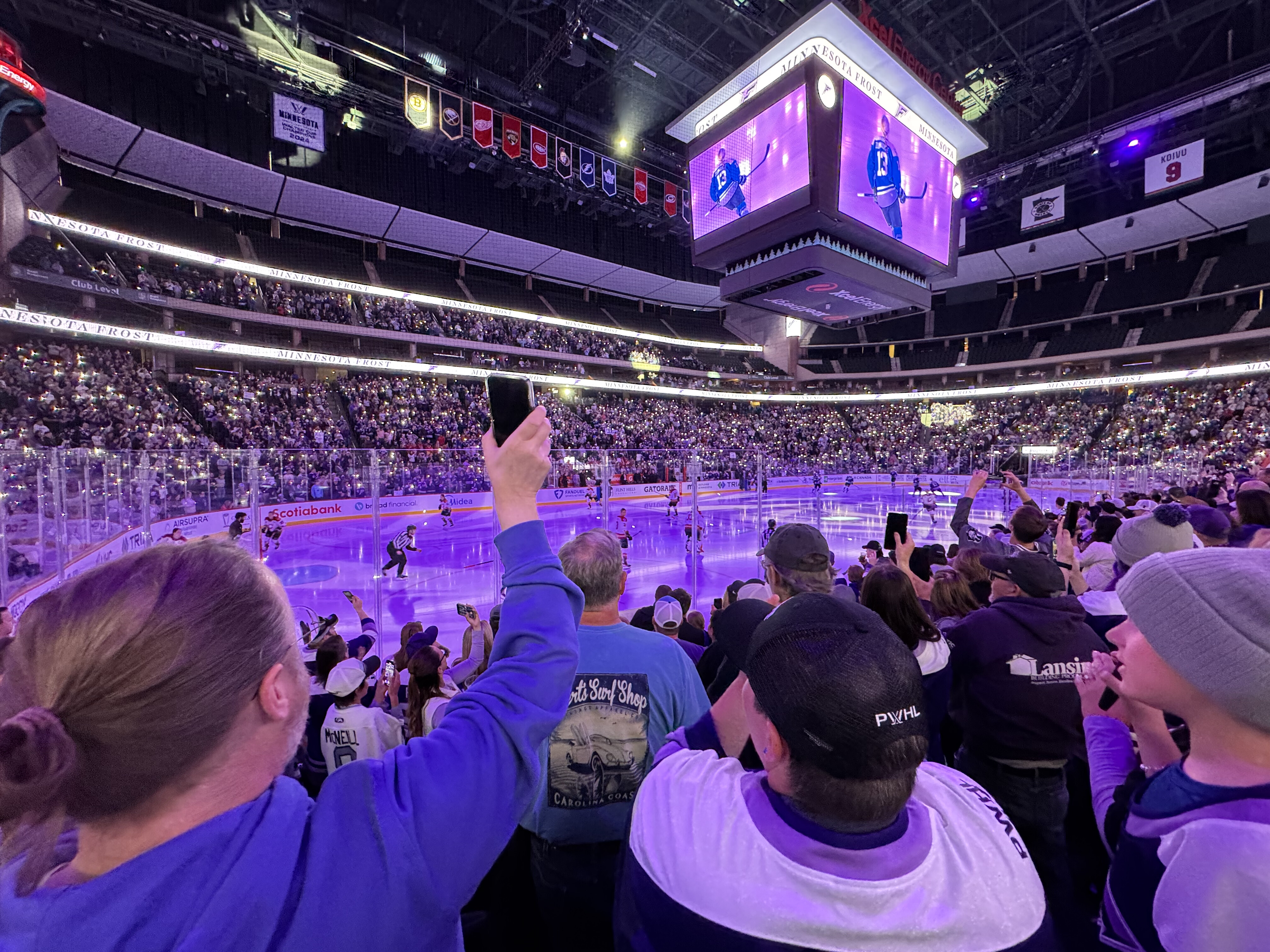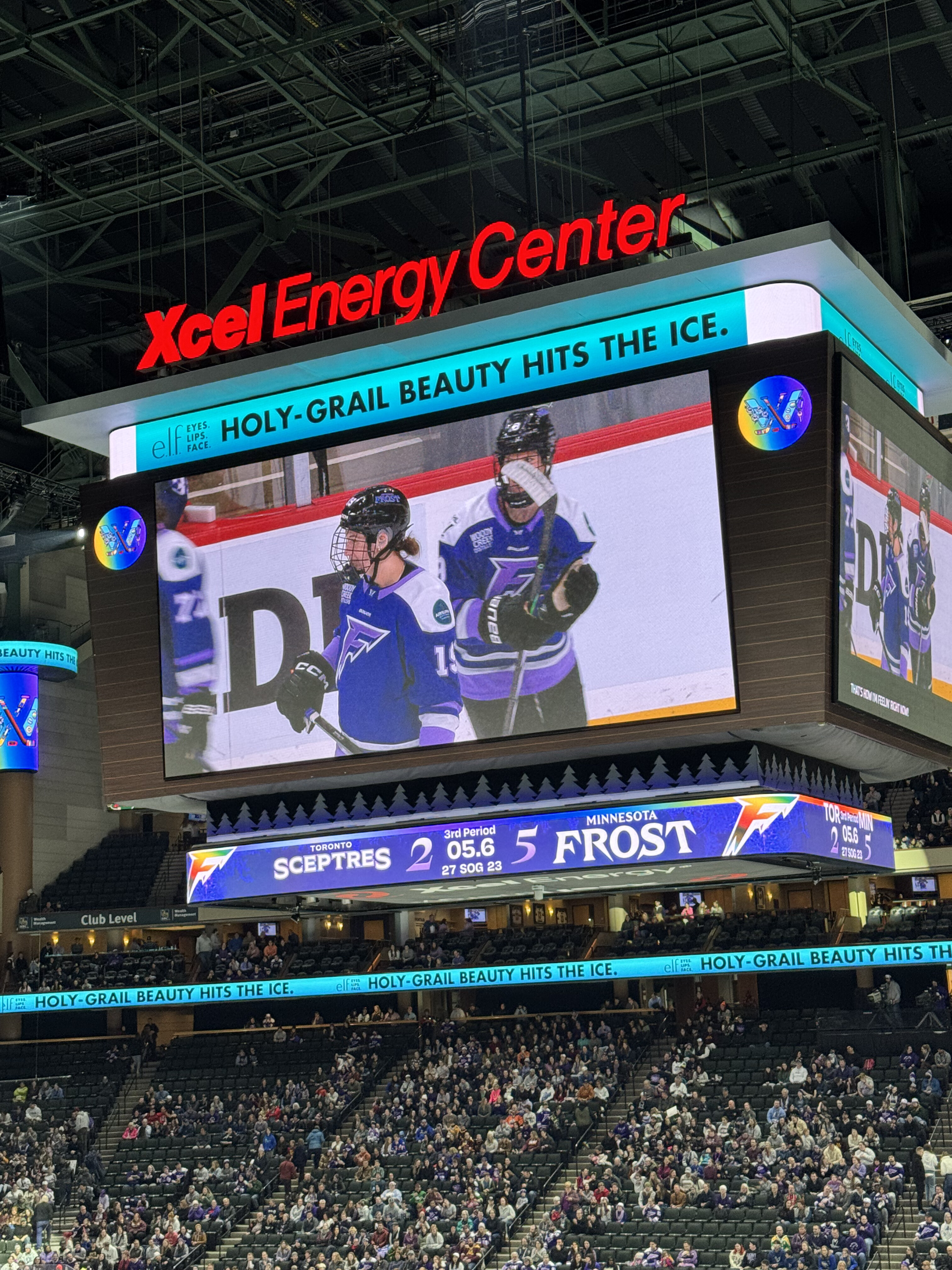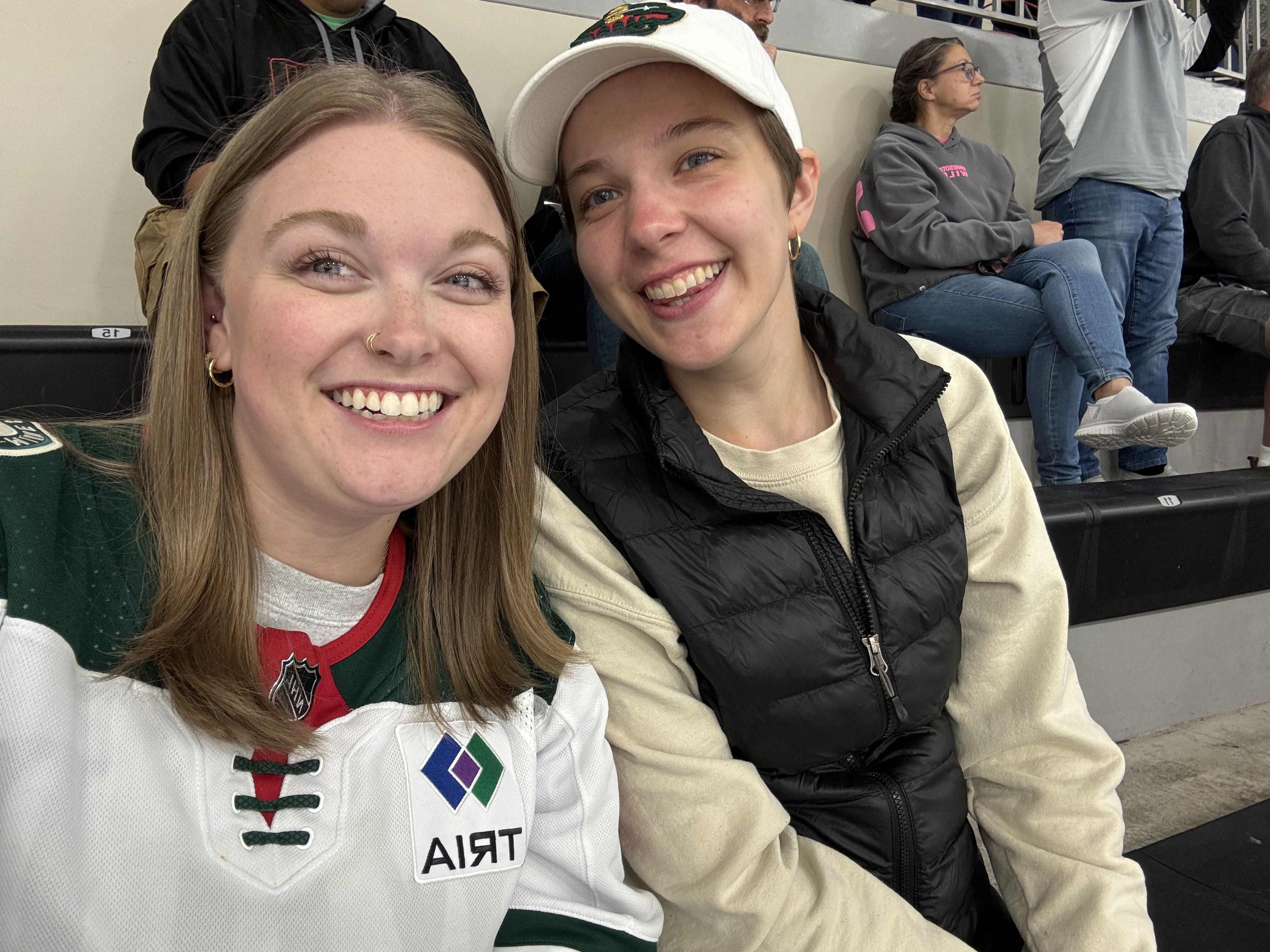 The past 3(ish?) years, Käthe has gotten quite into watching professional hockey, both the men’s team (MN Wild) and the women’s team (MN Frost). She now makes it her mission to pull anyone else she can into the fold and has succeeded on a few accounts as seen here with Ted (dad), Grandmoms (Ted’s mom), and Natalie (sister-in-law). This particular game was the pride game and we got to see 3 proposals and a Frost win!