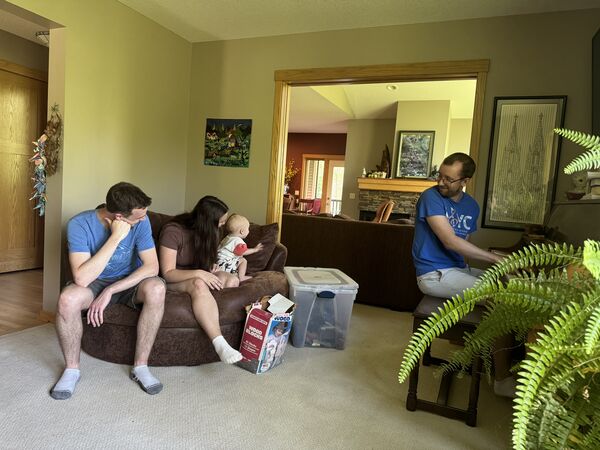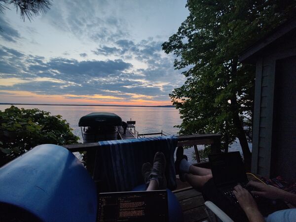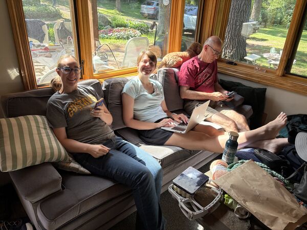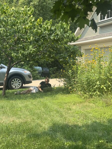 The first weekend in August, Ted and Dave participated in the Alexandria Sprint Triathlon, so we went to cheer them on! Before heading north, Chandler spent some time working in a new office space (Käthe's parents' front yard).