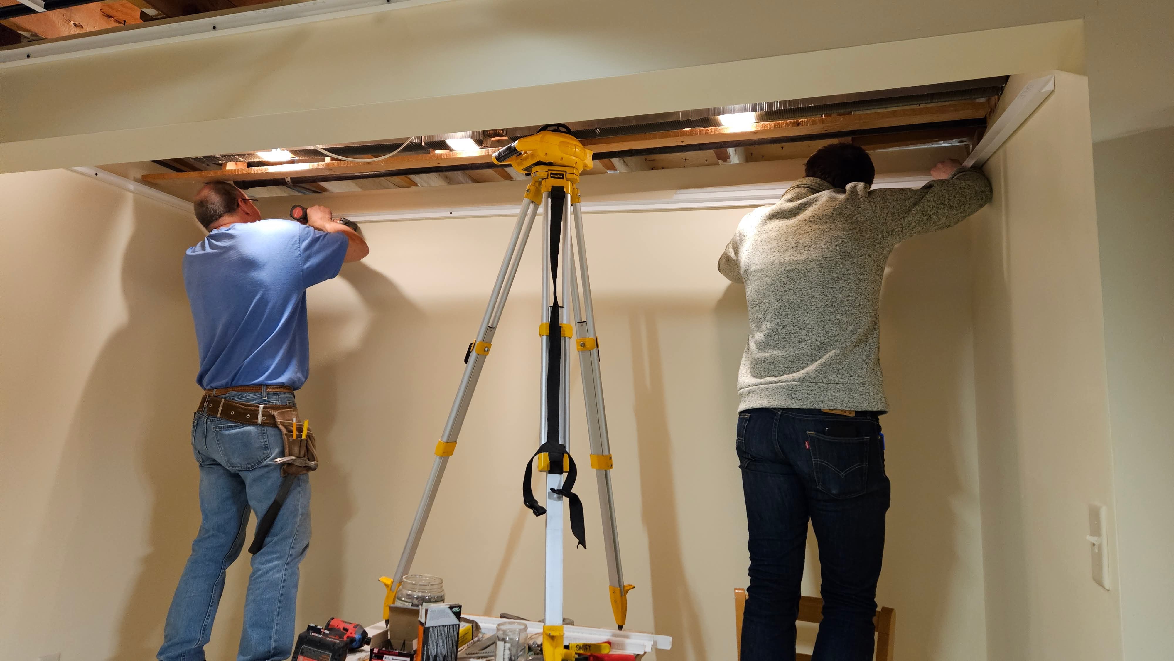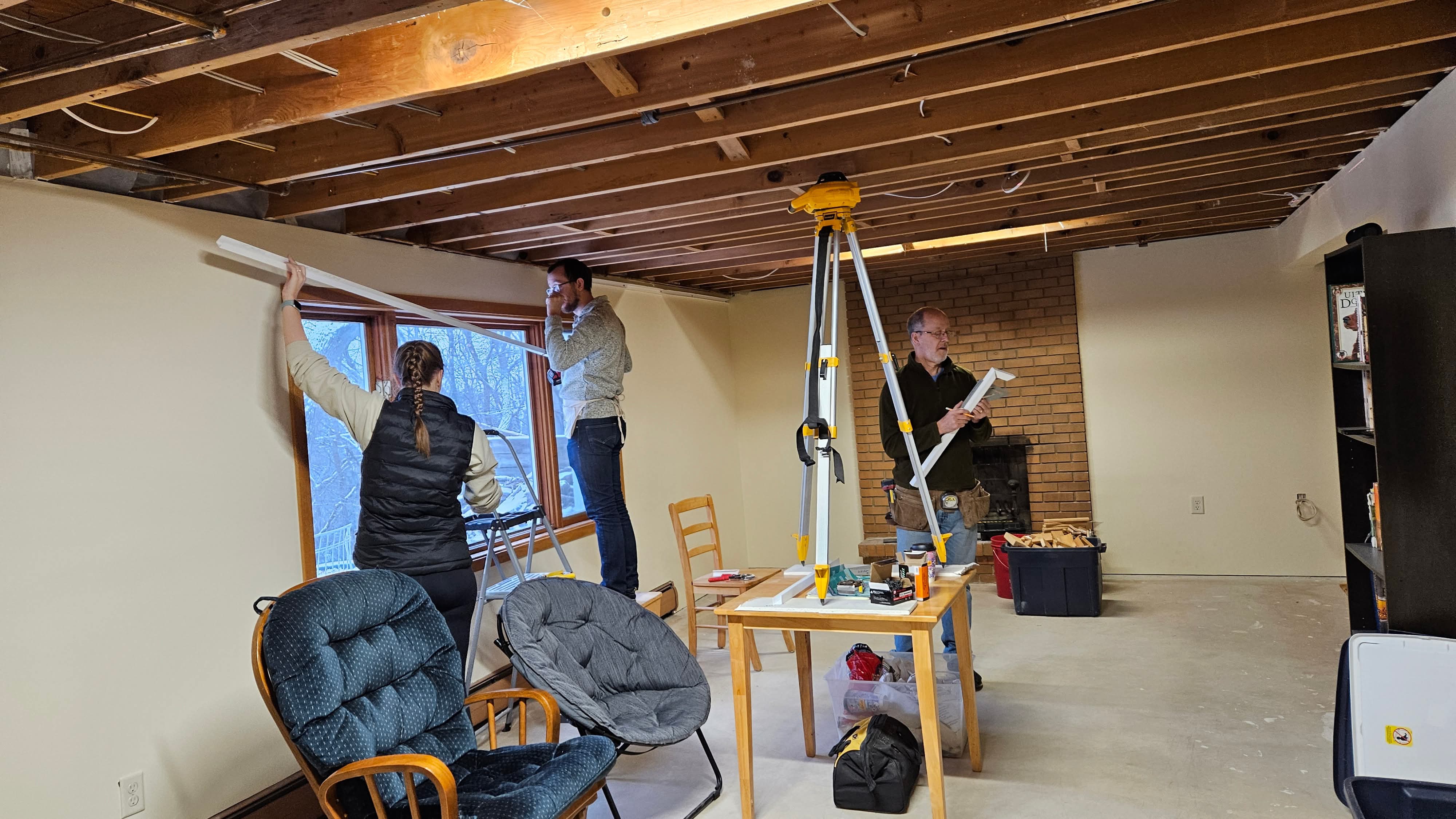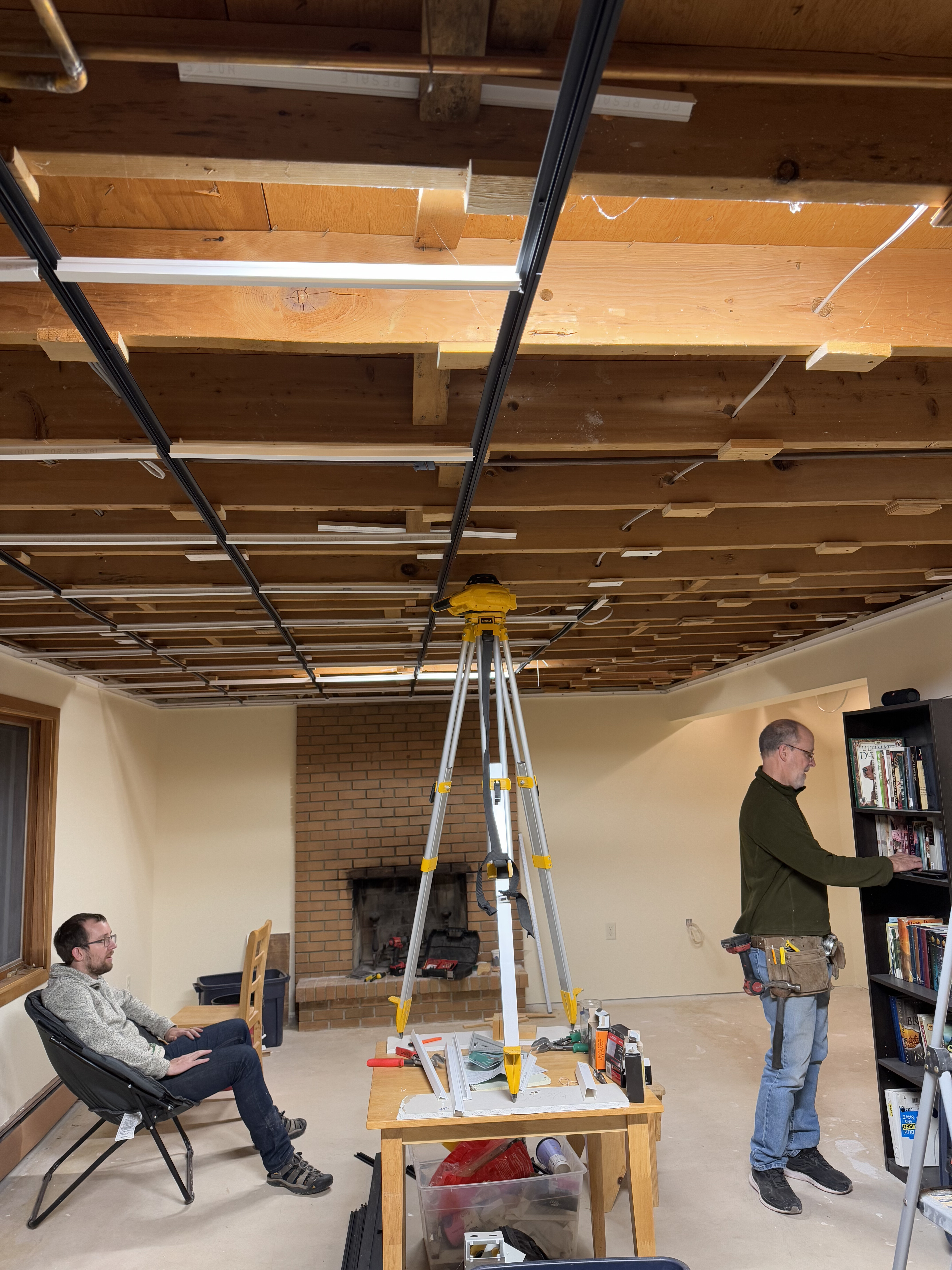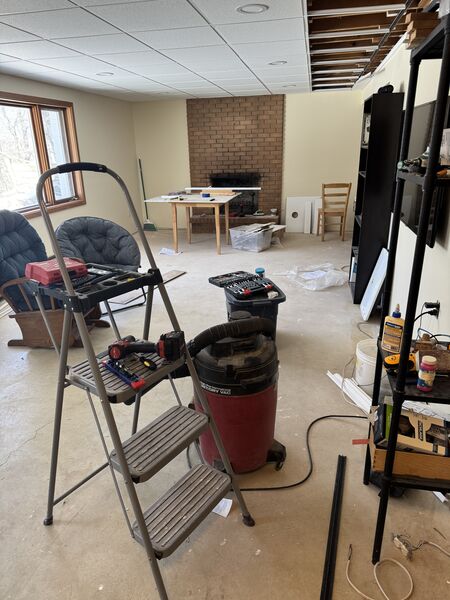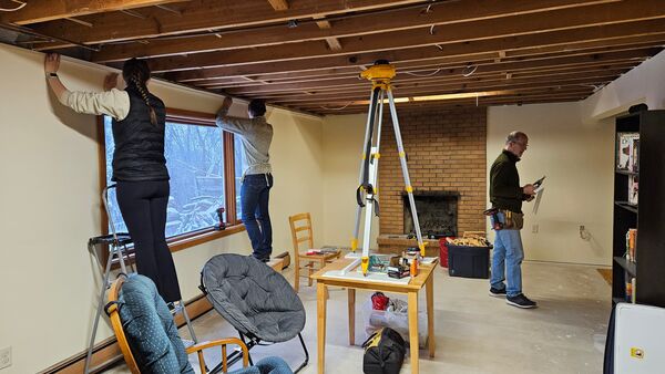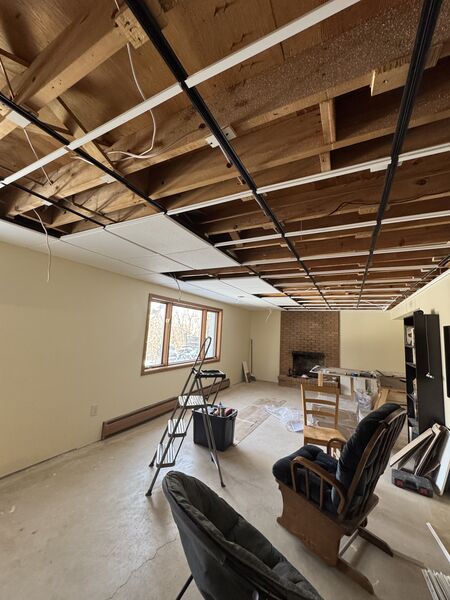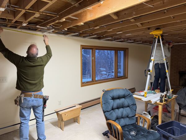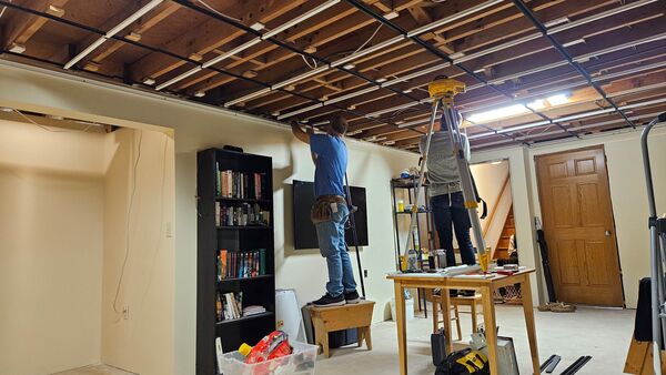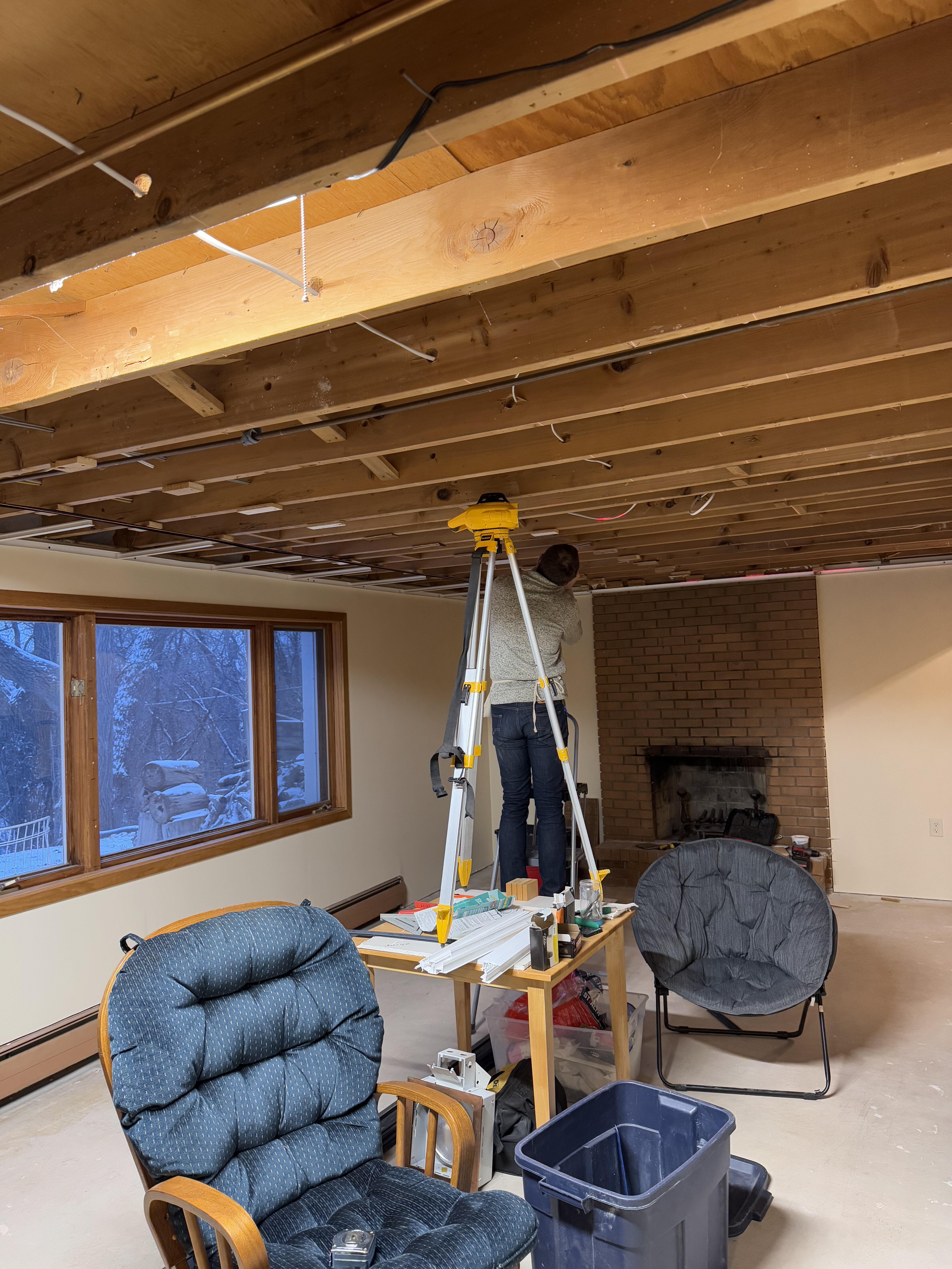 Starting the year putting in basement ceiling! 10/10 recommend renting a laser level if you are ever embarking on a project like this.