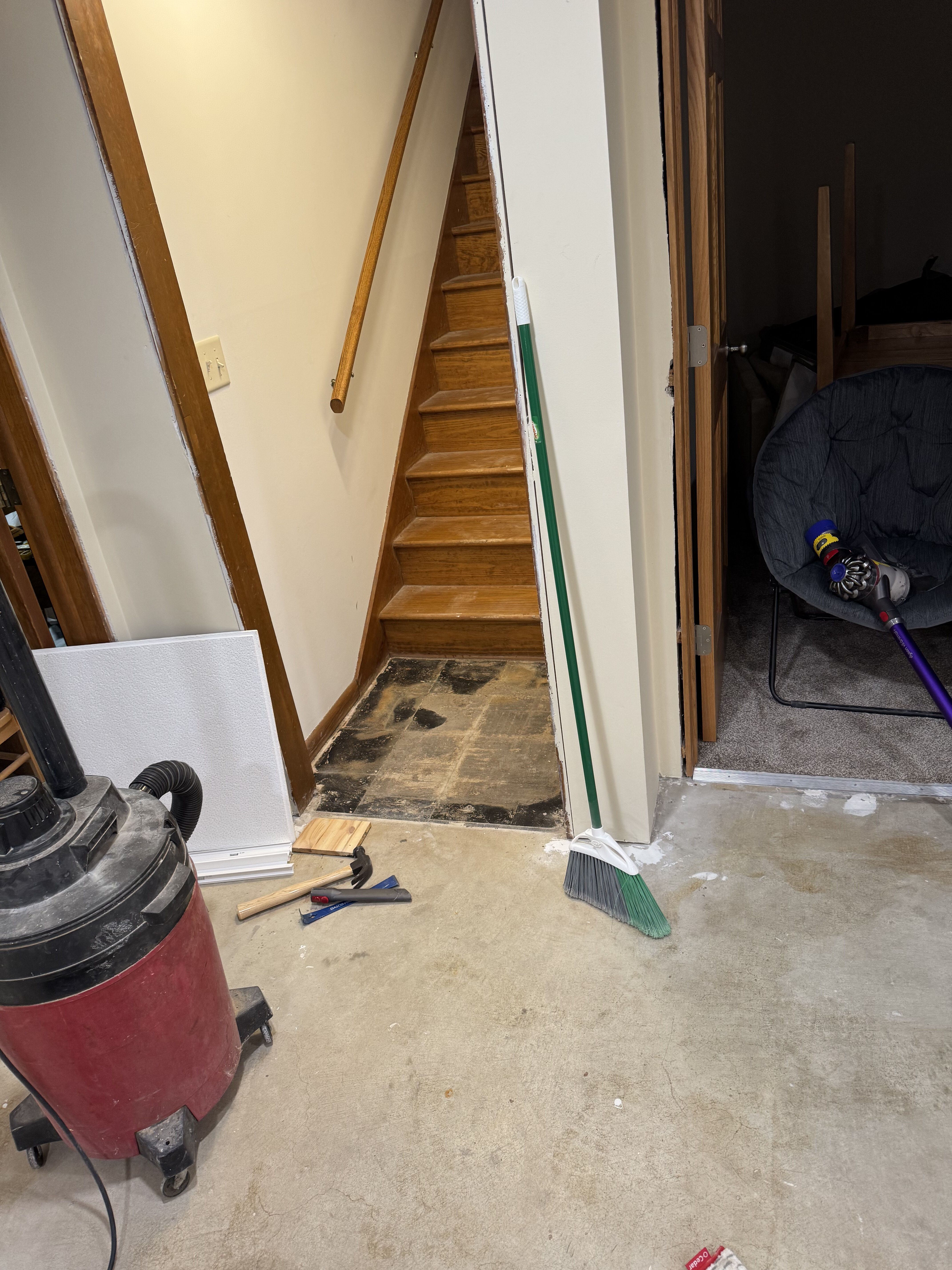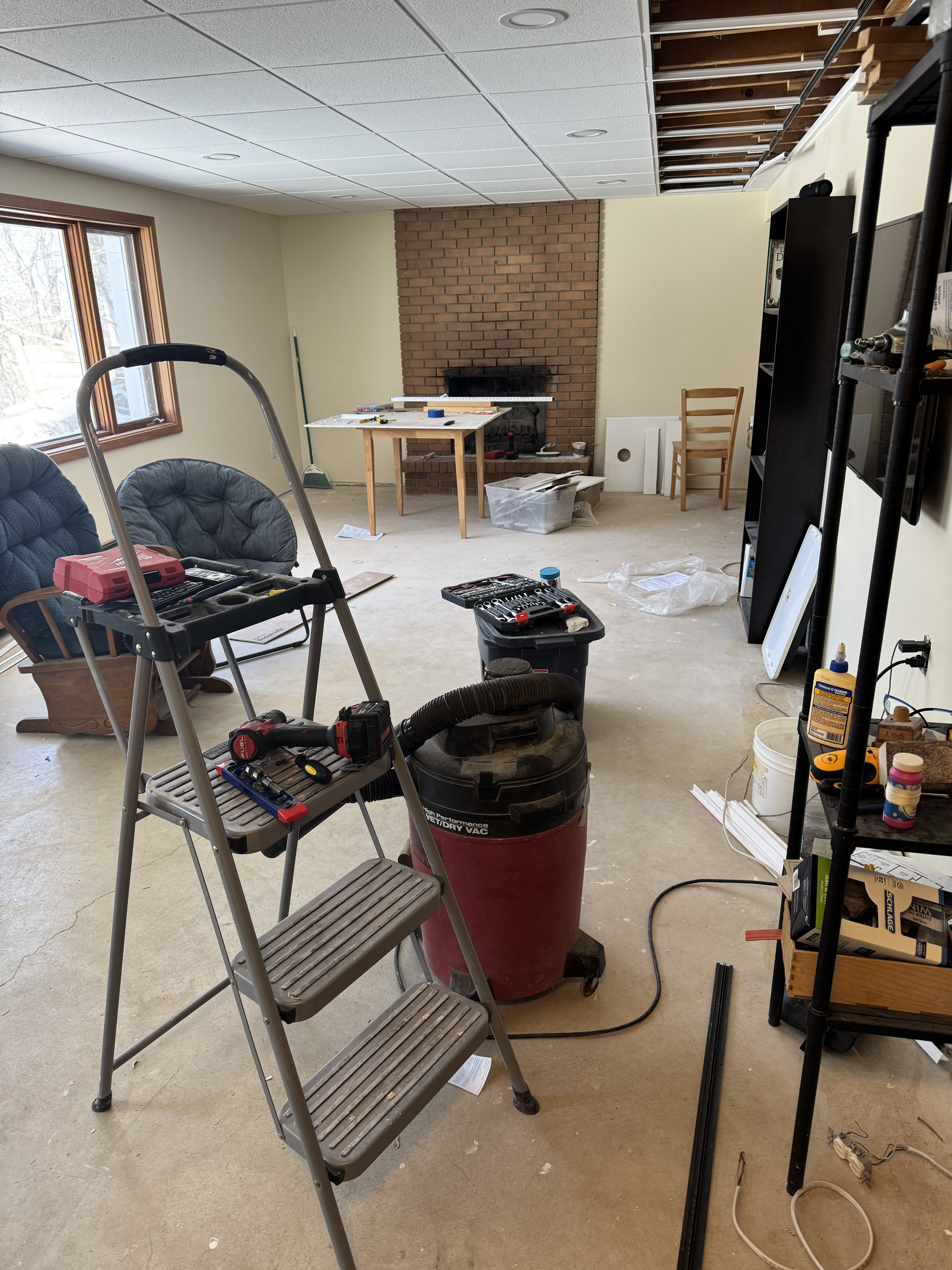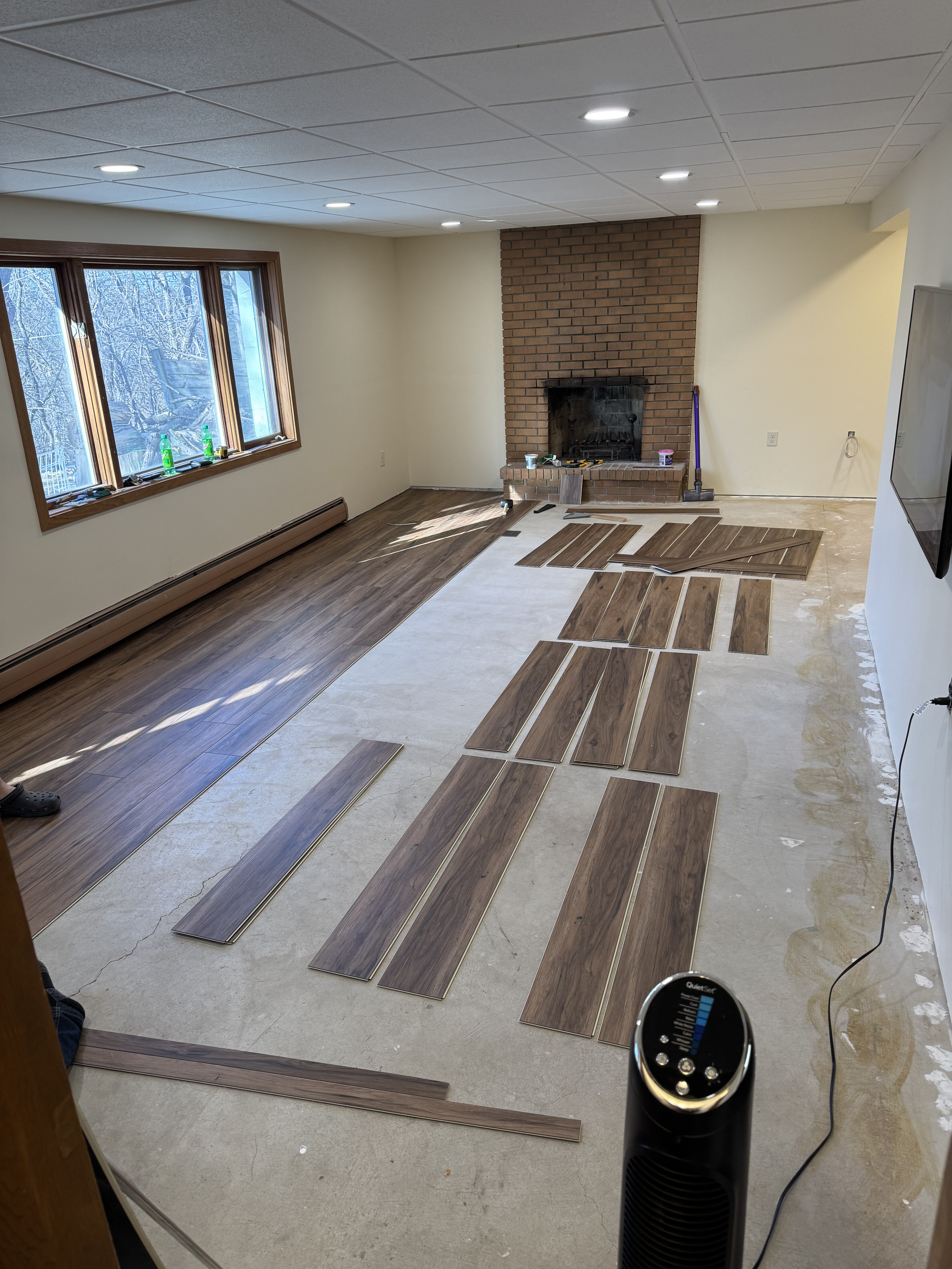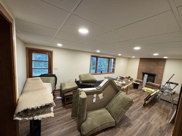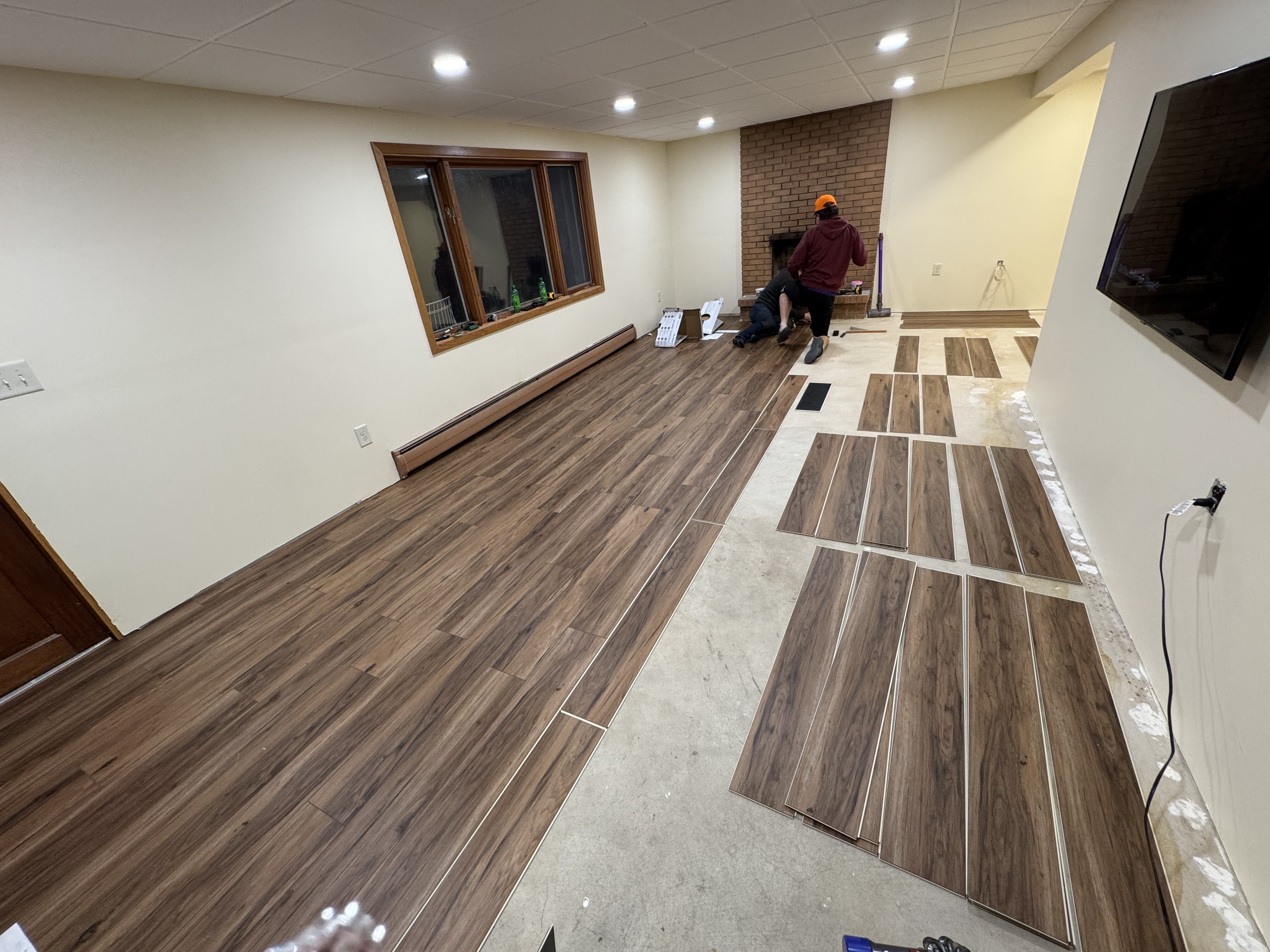 We did it! The alcove still needs a bar, flooring, and trim, but a majority of the basement is usable! Woo!