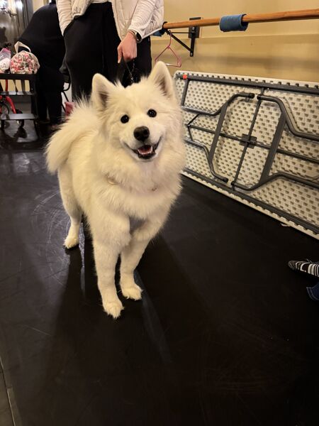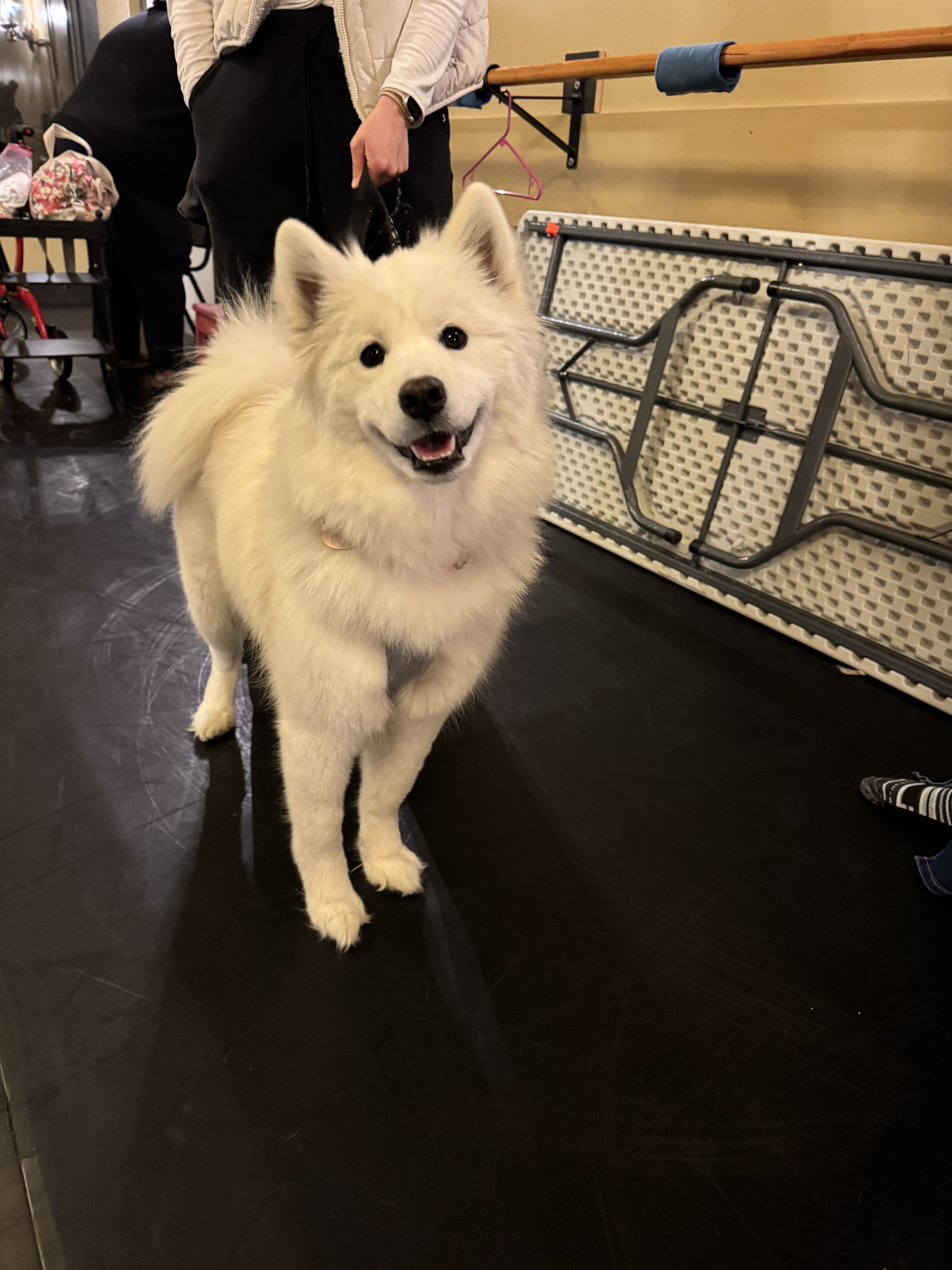 Käthe judged some of the studio’s competitive dancers at their mock competition—a way for the dancers to feel more prepared going into the comp season—and one of the other teachers brought her sweet samoyed, Lumi!