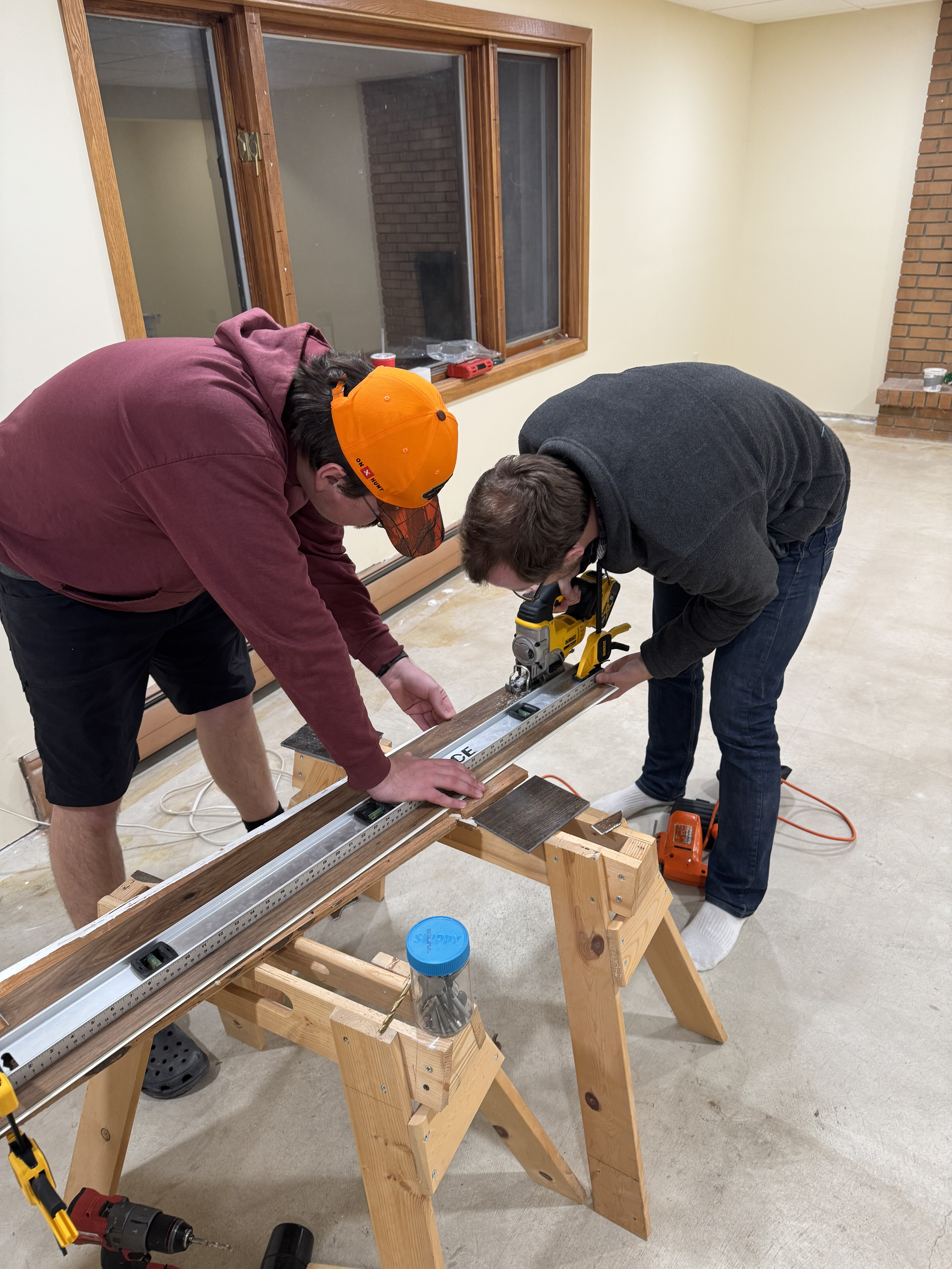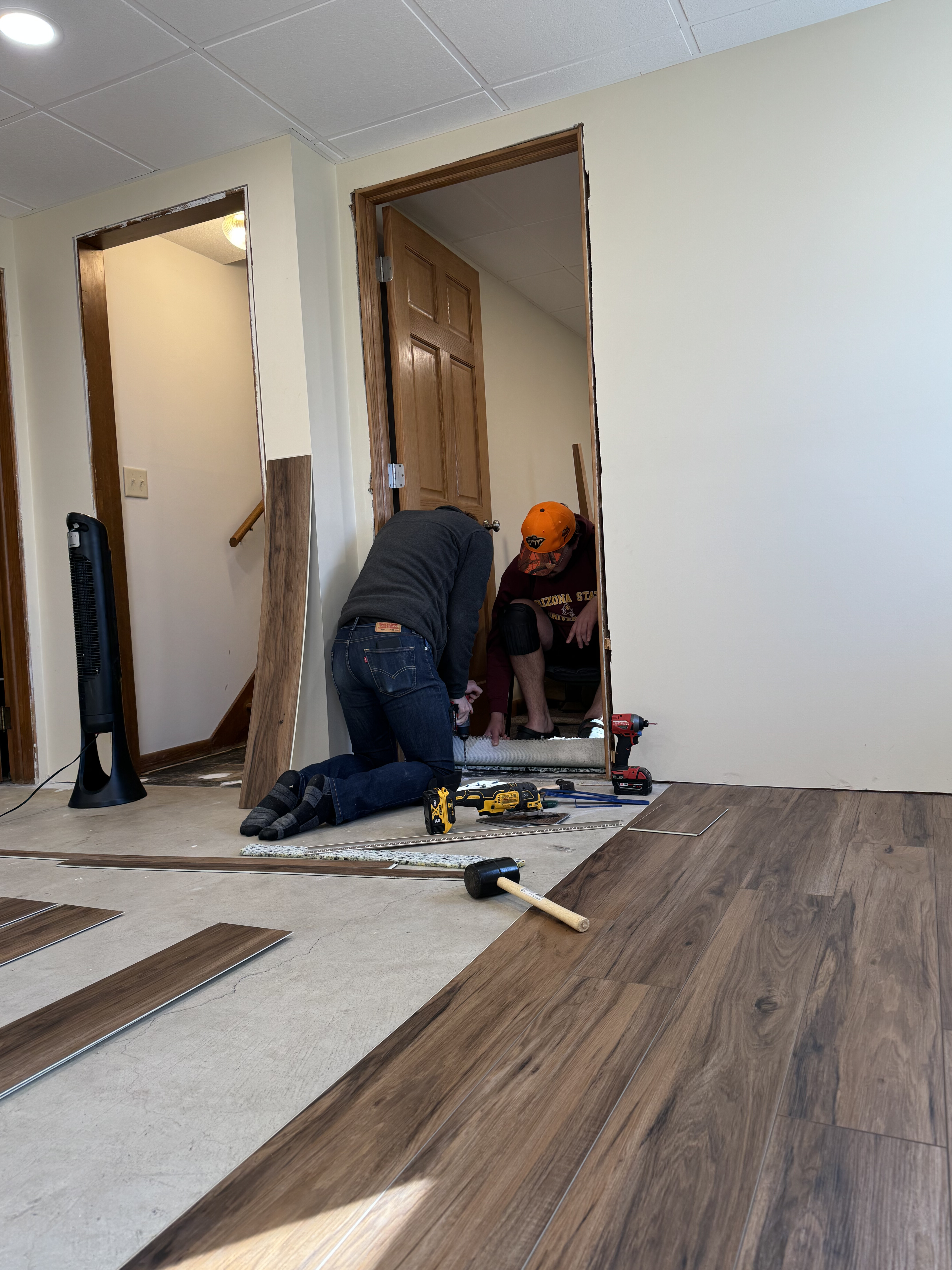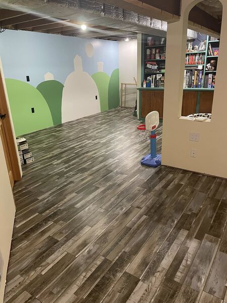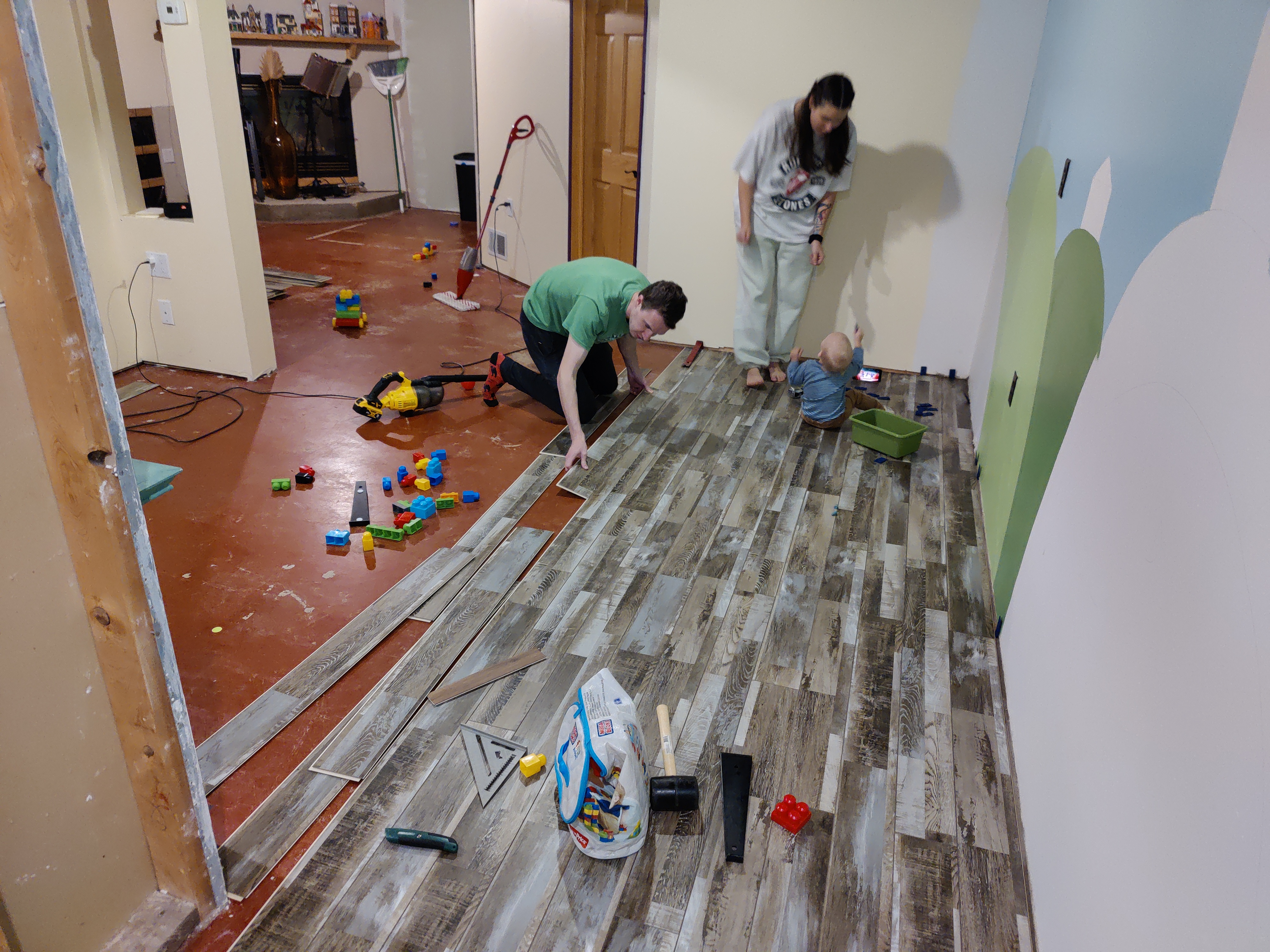 We had so much fun putting our floor in this year, we decided to help Greg and Alexis do the same in their basement!