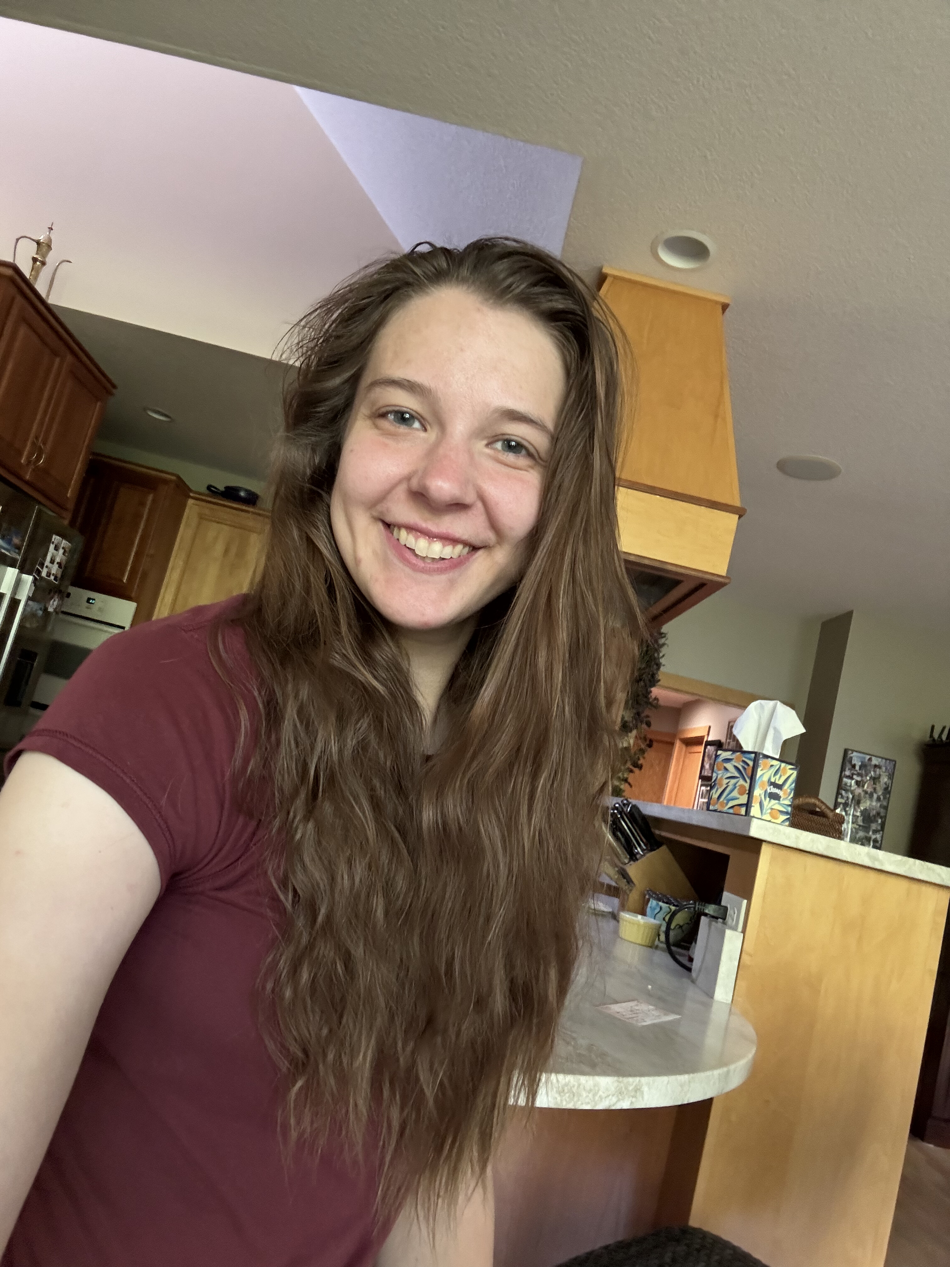 She did feel a little weird driving around with pigtails in her front seat before those got mailed off for donation.