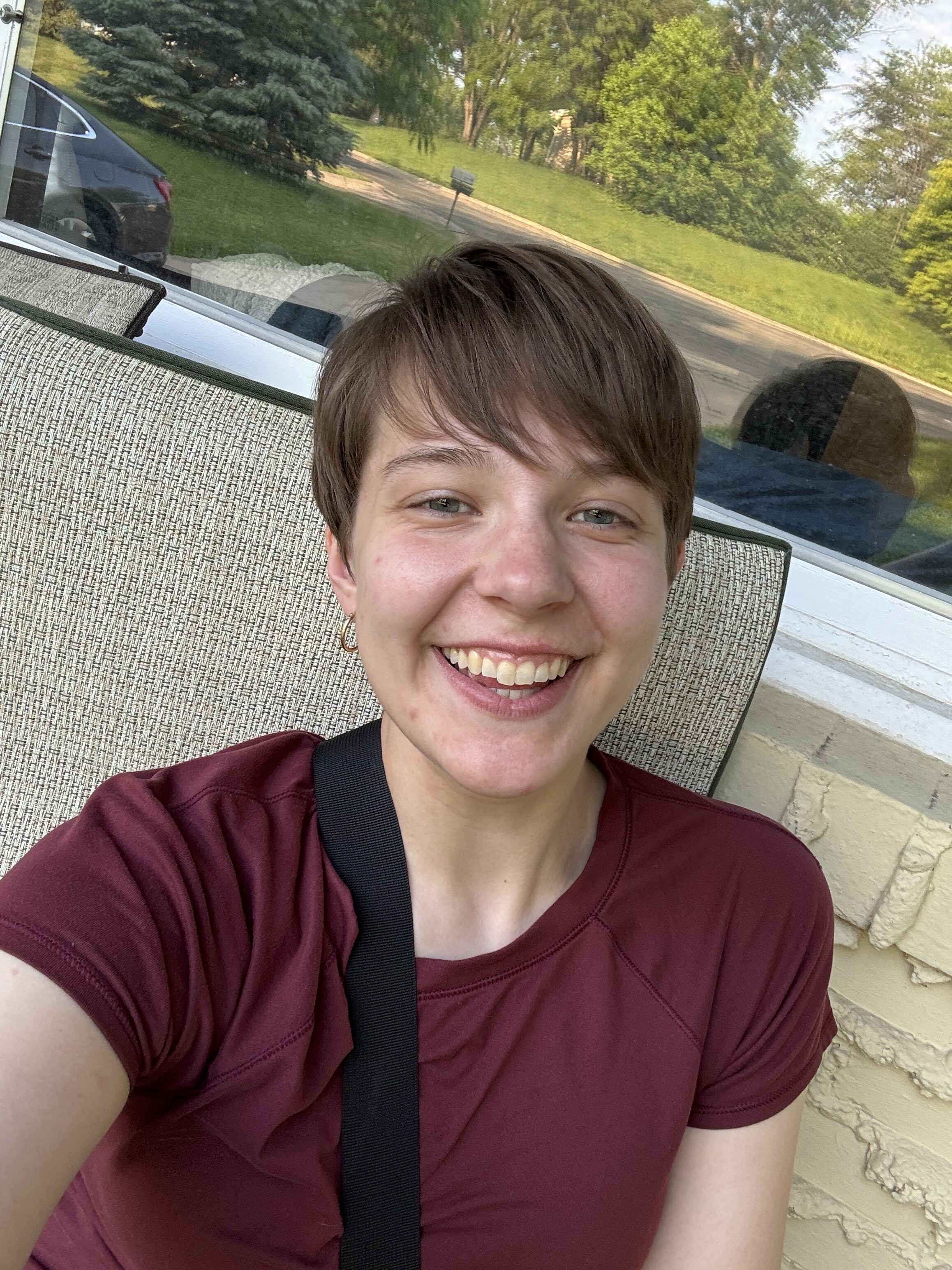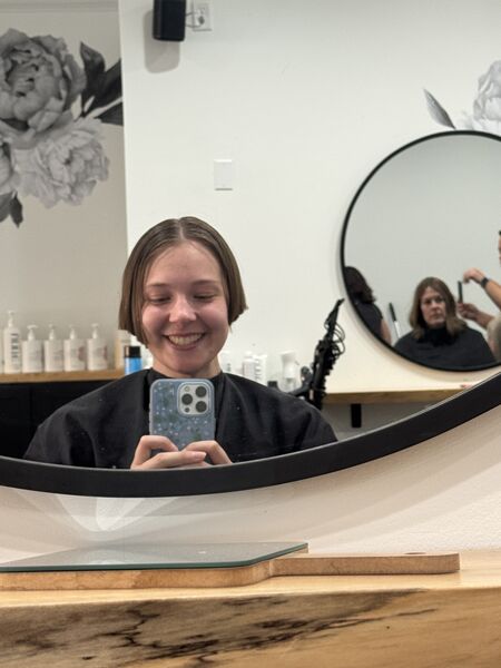 After thinking about a dramatic hair change since high school, Käthe finally took the leap: With no big weddings or other events this summer to permanently document hair-related mishaps, she decided maybe now was the time…. So two days after the dance recital, she went in and chopped off 12 inches of hair! It took about a week to stop jump scaring herself in the mirror.