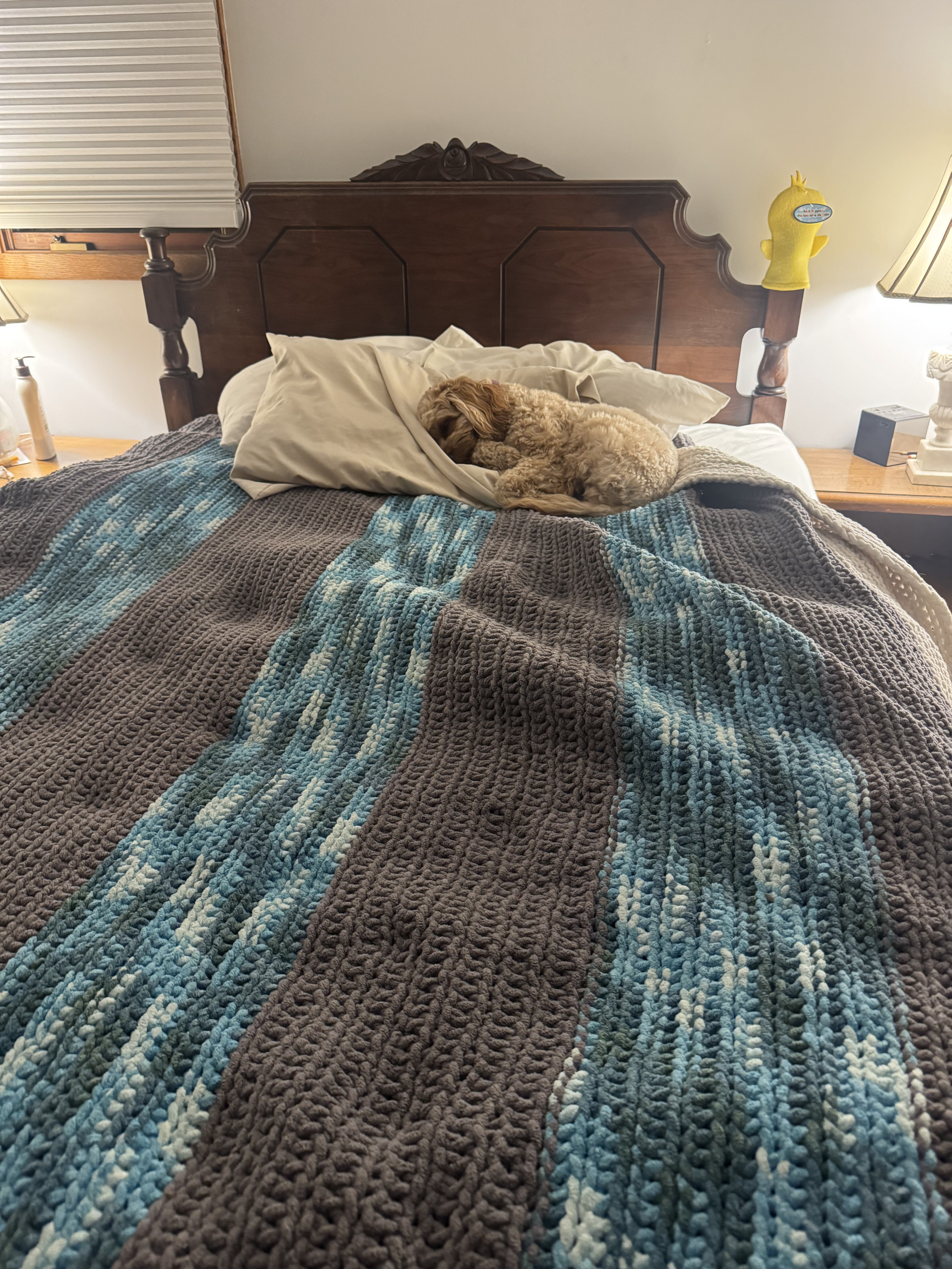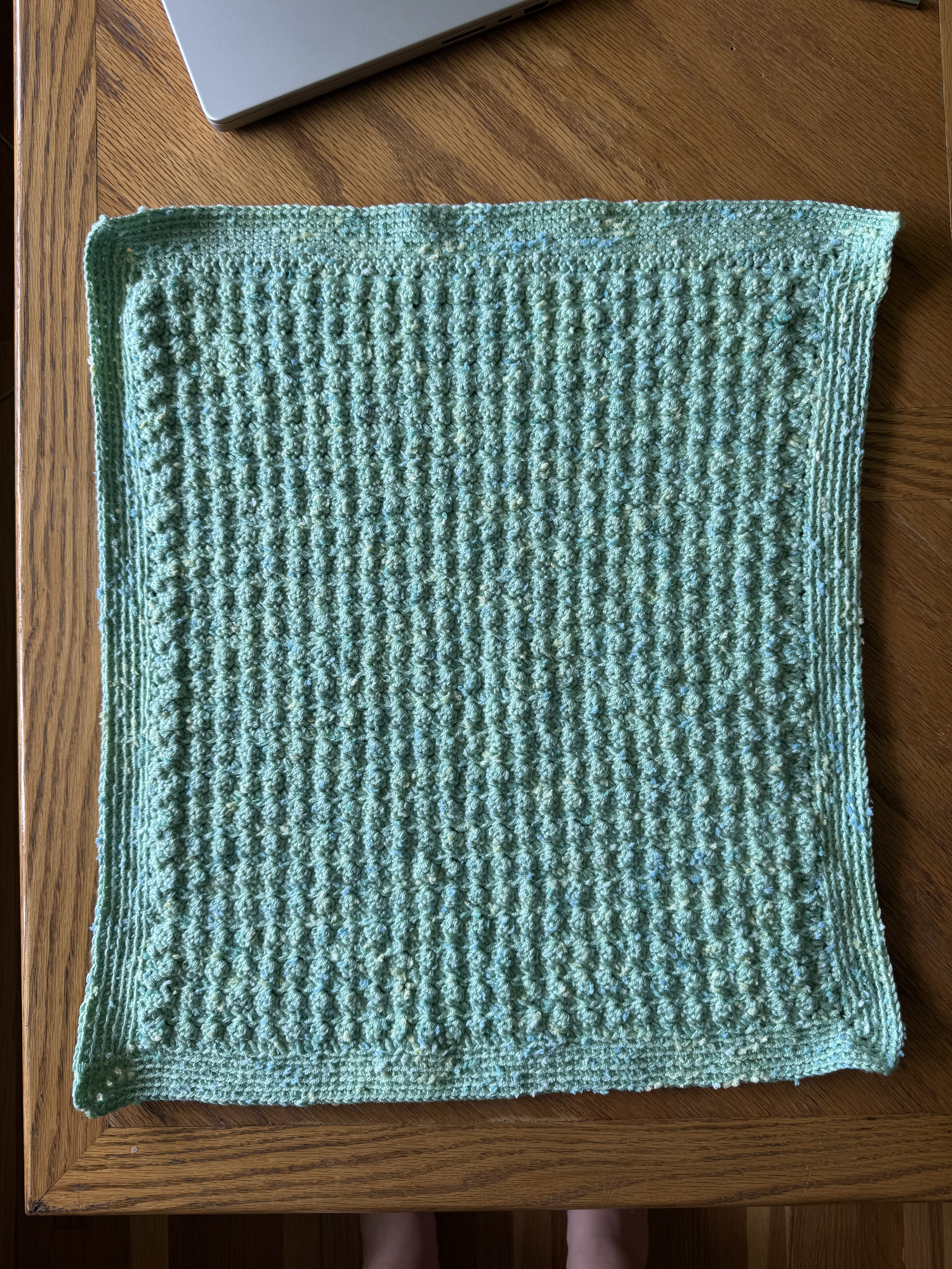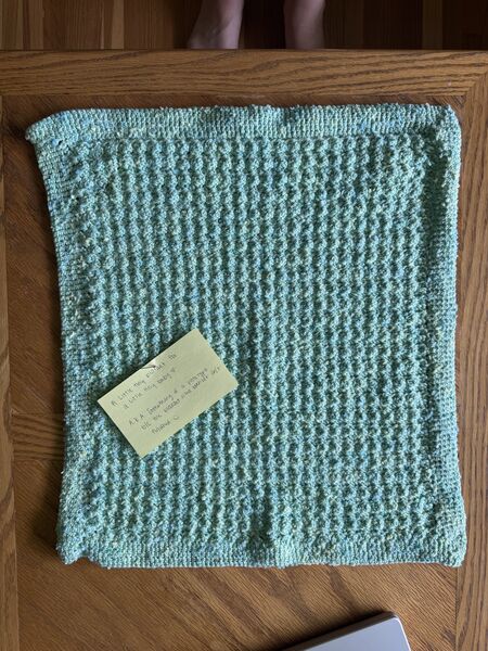 Another one of Käthe’s friends was due in July, so Käthe made a baby blanket for her baby shower! Unfortunately, the blanket was not done for the shower, so she made a prototype to bring instead :)