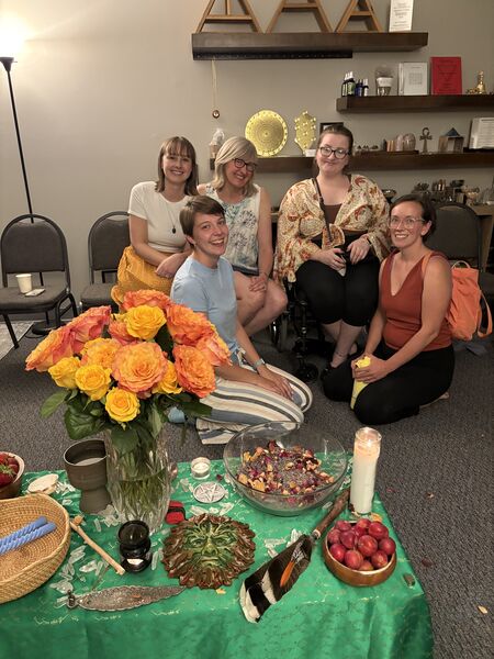 Kaitlyn (mom’s friend), Käthe, Sharon, Natalie, and Charlotte (cousin) attended a summer solstice event.