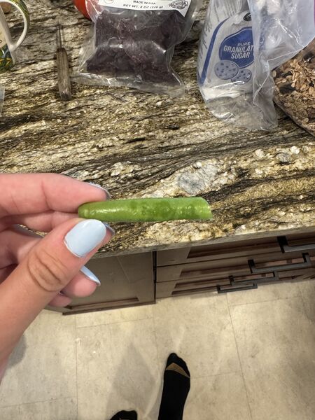 We discovered that Mabel does not like green beans.