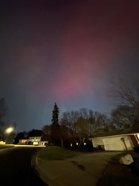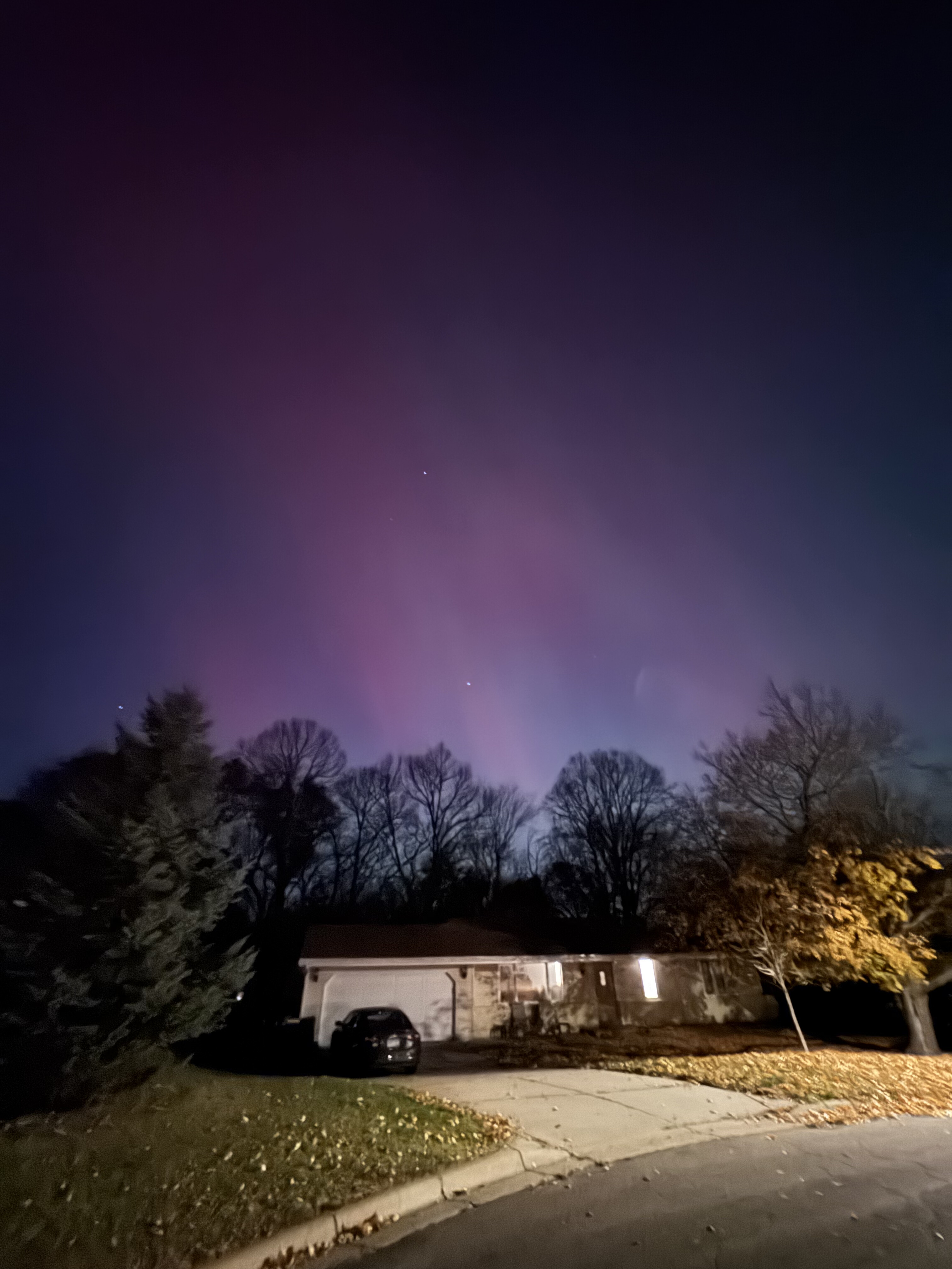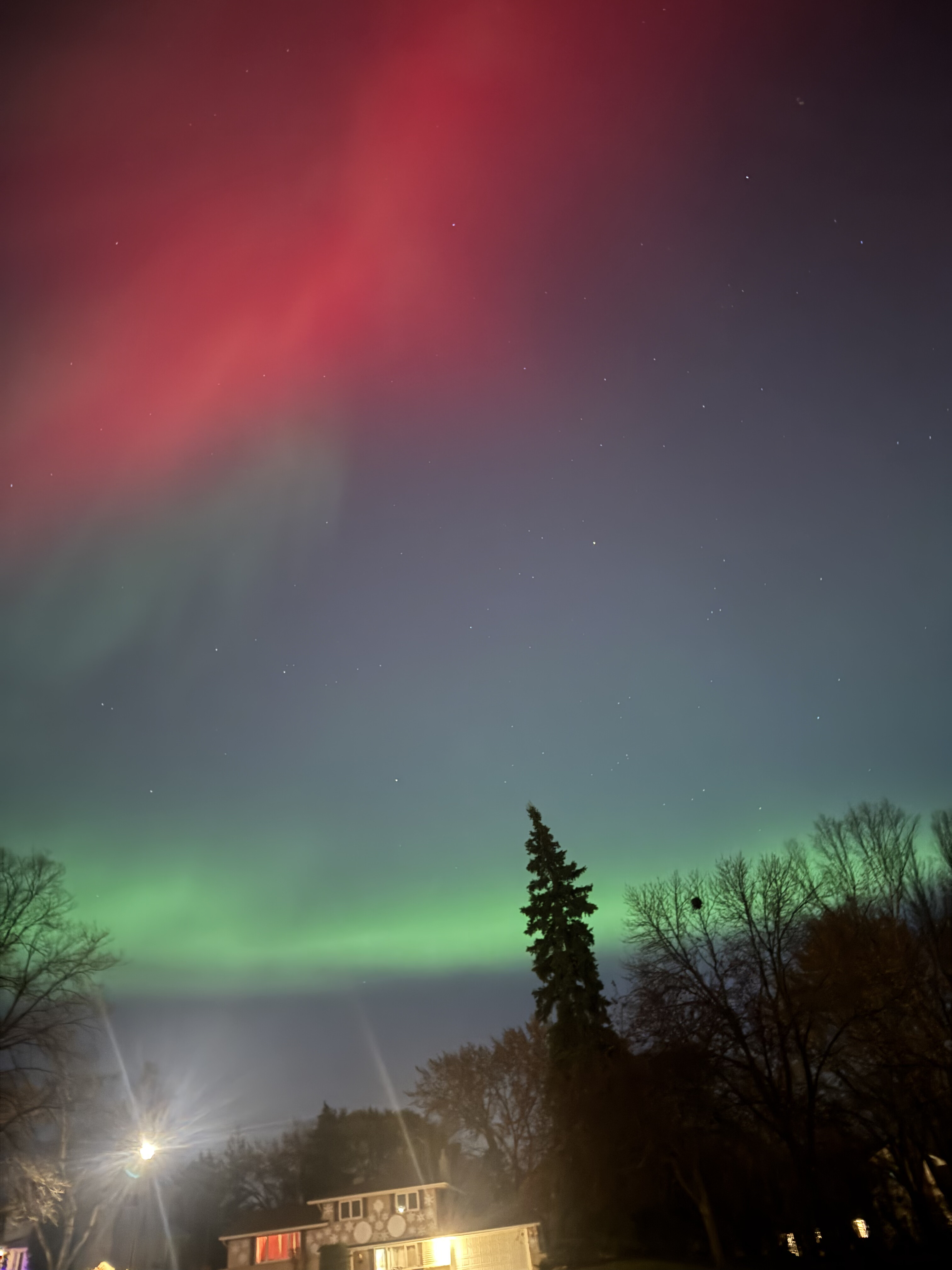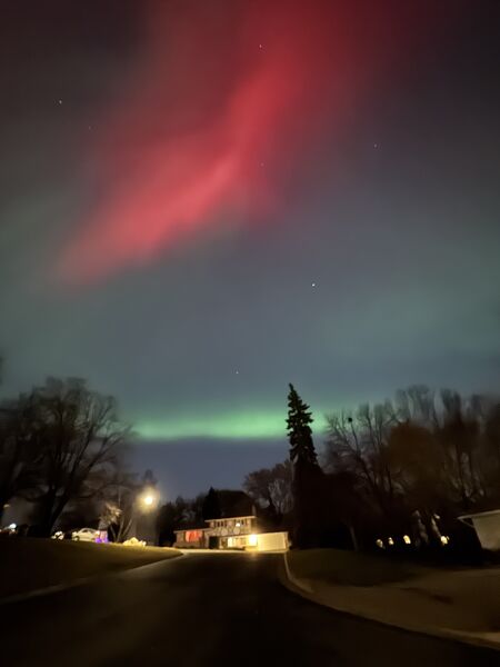 We thought we were going to have to go on a bit of a walk to see the aurora borealis from our neighborhood, but even standing at the end of our driveway under a streetlight the lights were visible and BRIGHT!