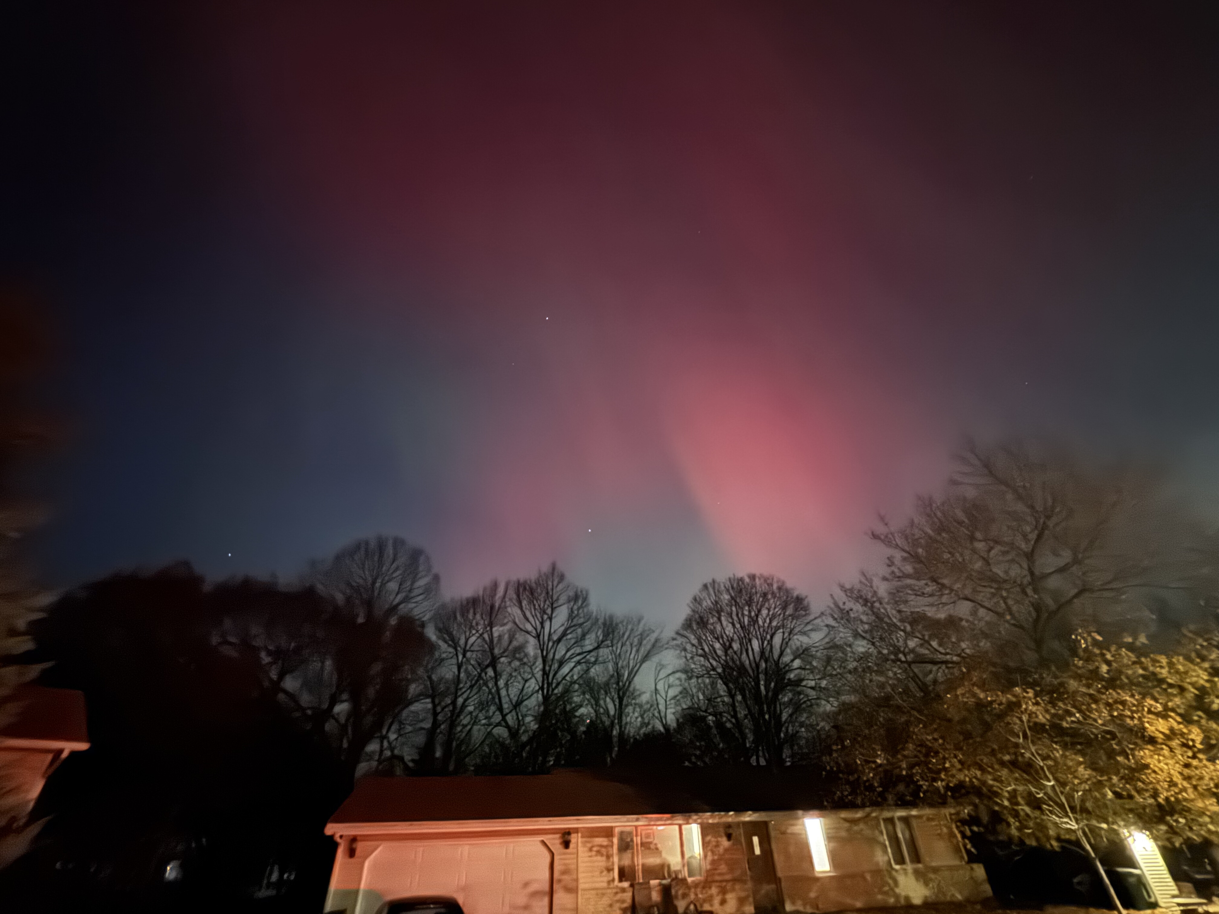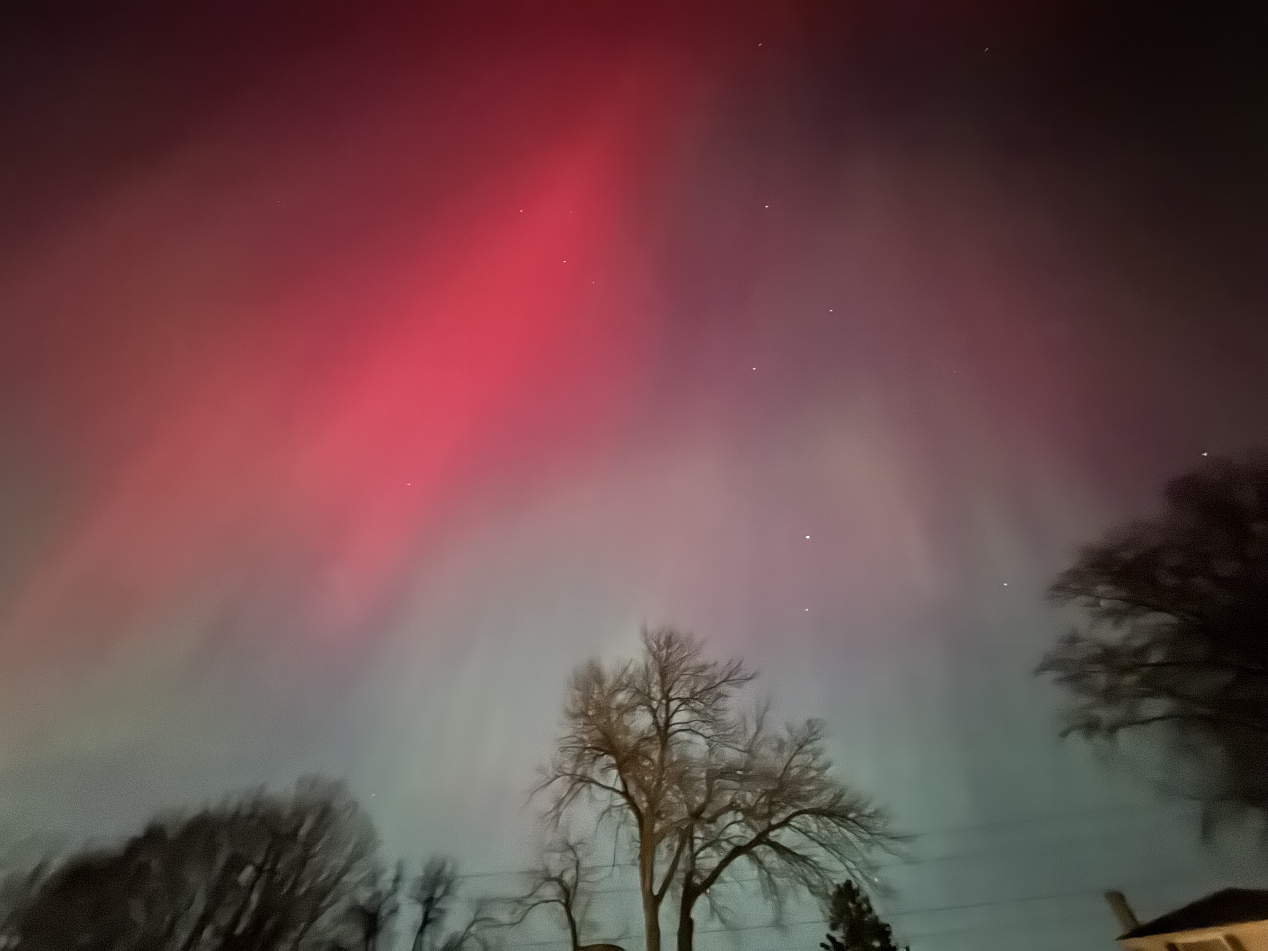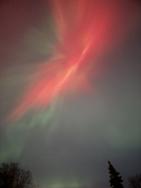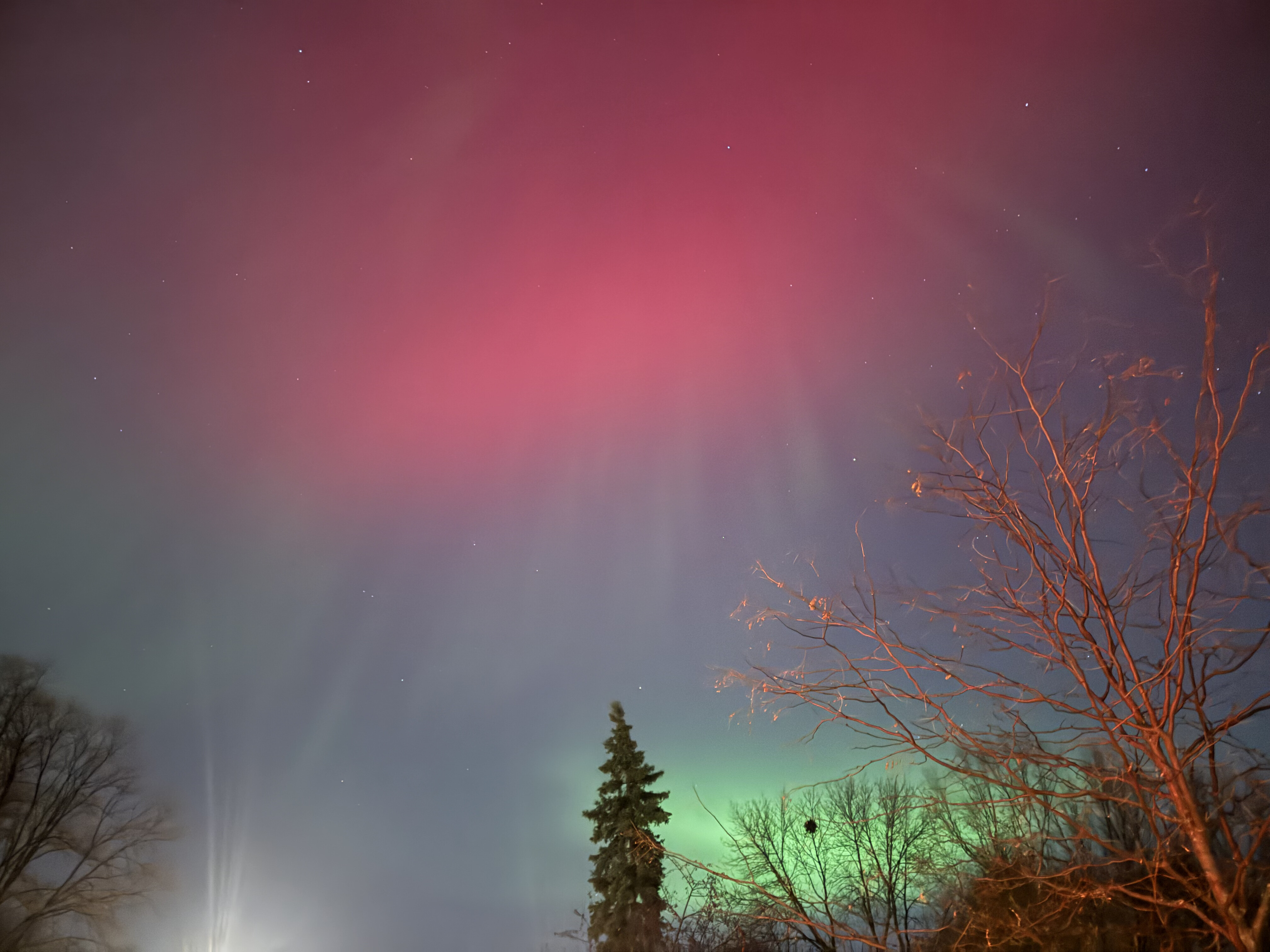 We thought we were going to have to go on a bit of a walk to see the aurora borealis from our neighborhood, but even standing at the end of our driveway under a streetlight the lights were visible and BRIGHT!