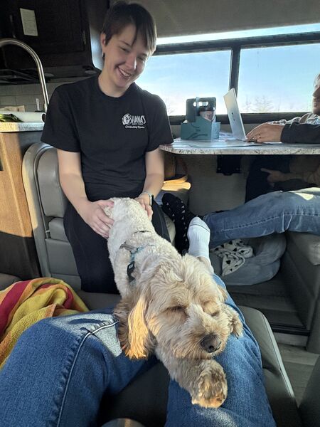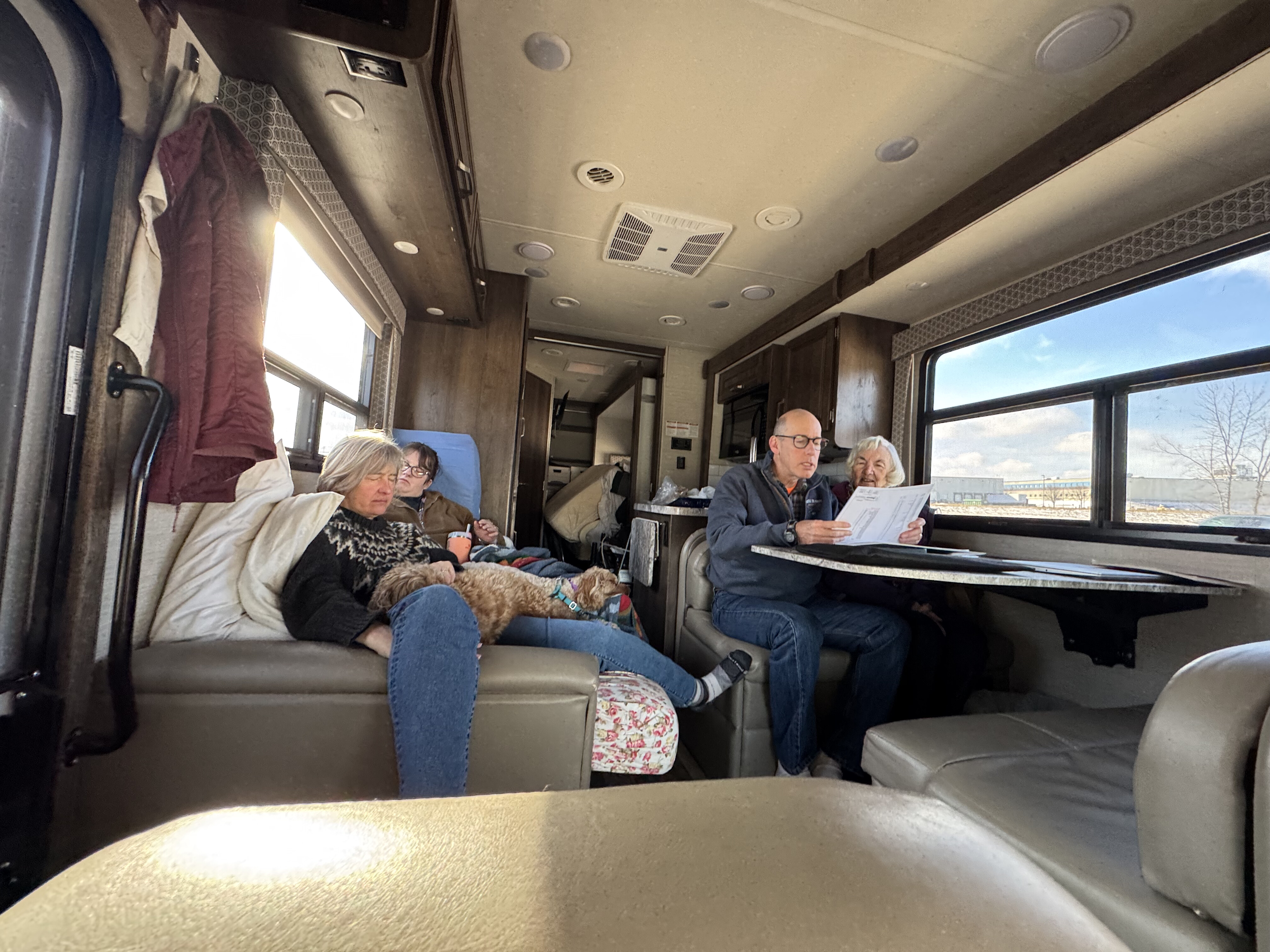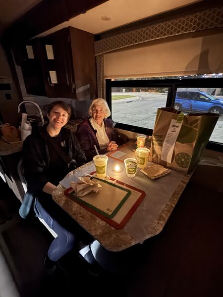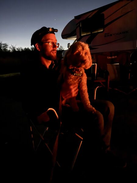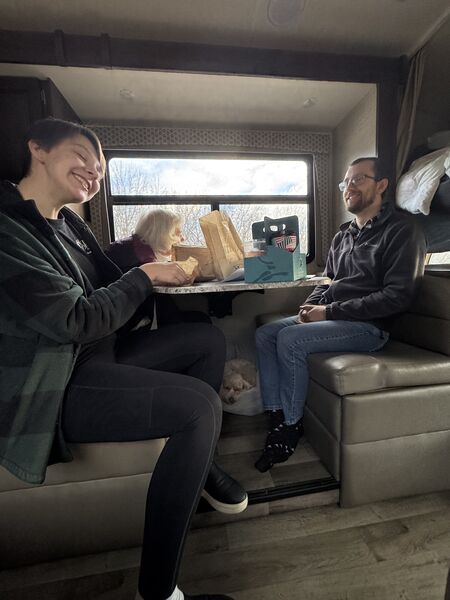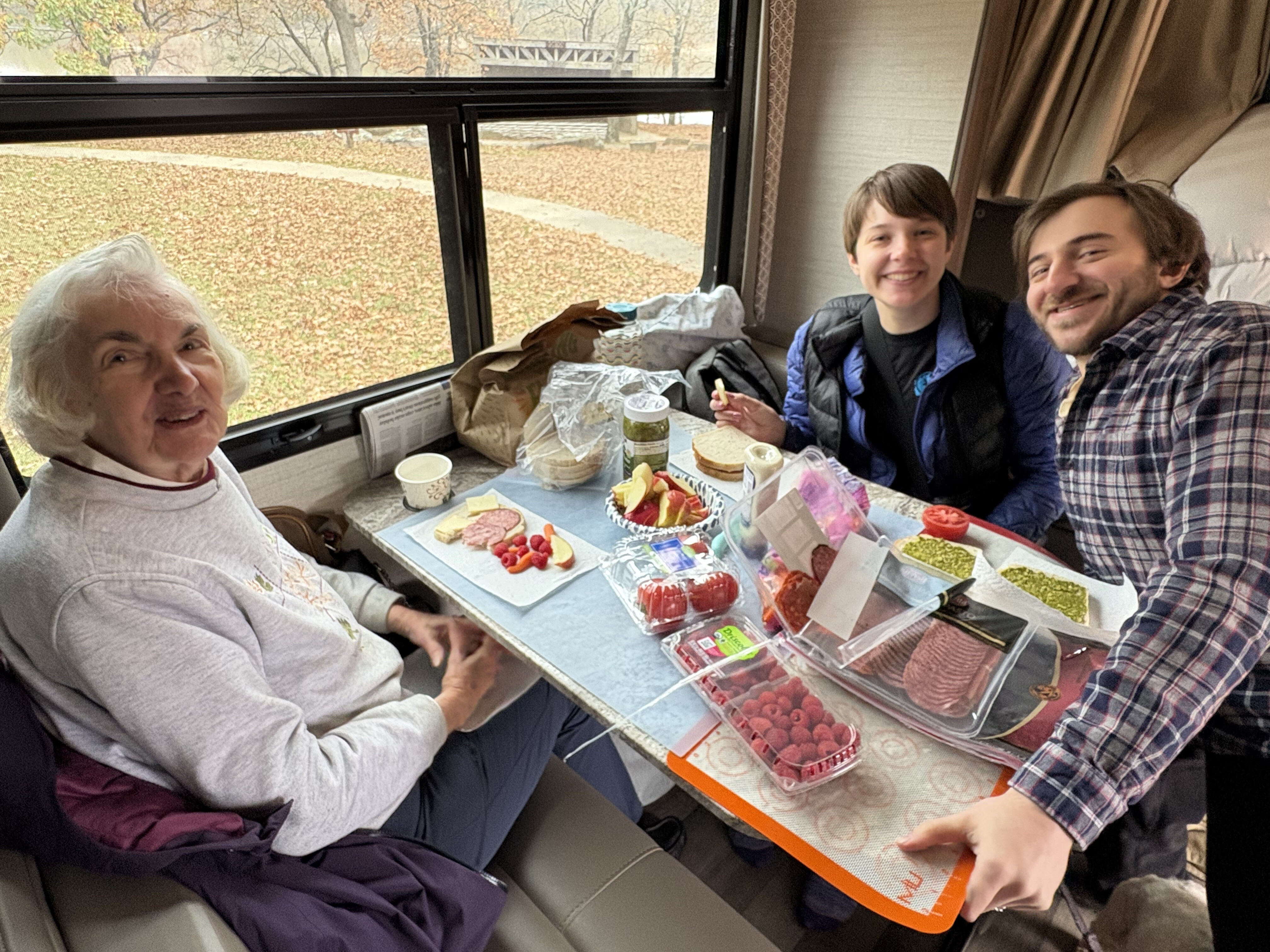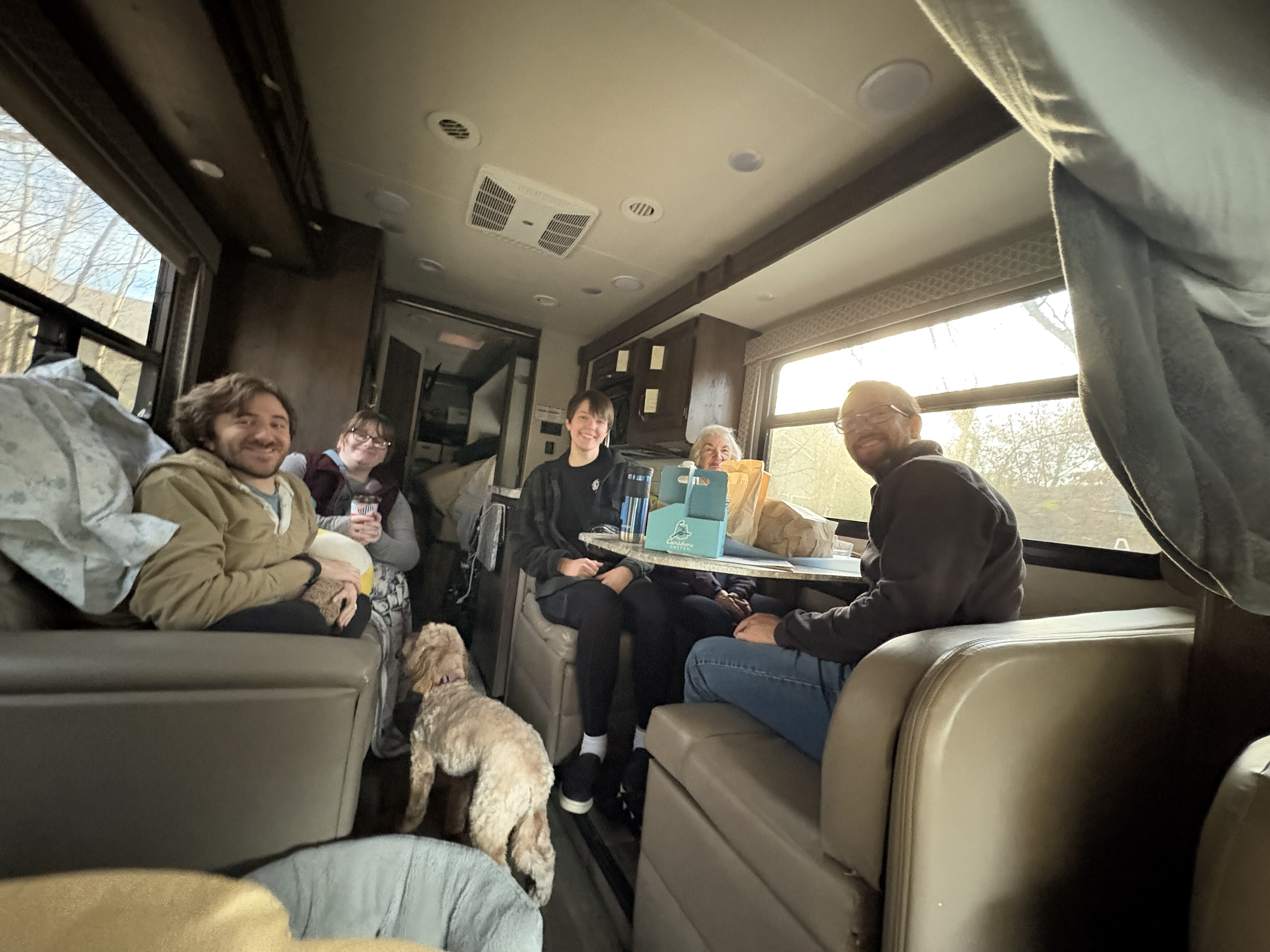 We went to Texas for Thanksgiving! Seven of us and two dogs loaded into Käthe’s parent’s RV and headed south. We left Saturday morning, stayed overnight in Vinita, Oklahoma, and then kept cruising until we made it to Ray Roberts State Park that evening. Mabel did much better on this trip than the one in August and Bodhi is a pro at RV travel at this point. We spent a few nights at the campsite (that had the bravest deer we have ever encountered) before heading into Dallas.