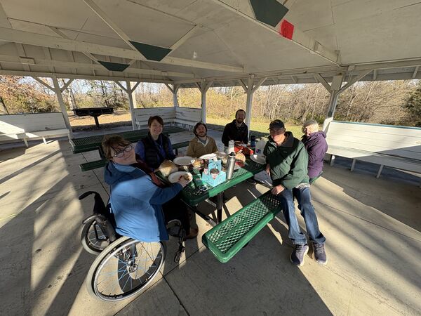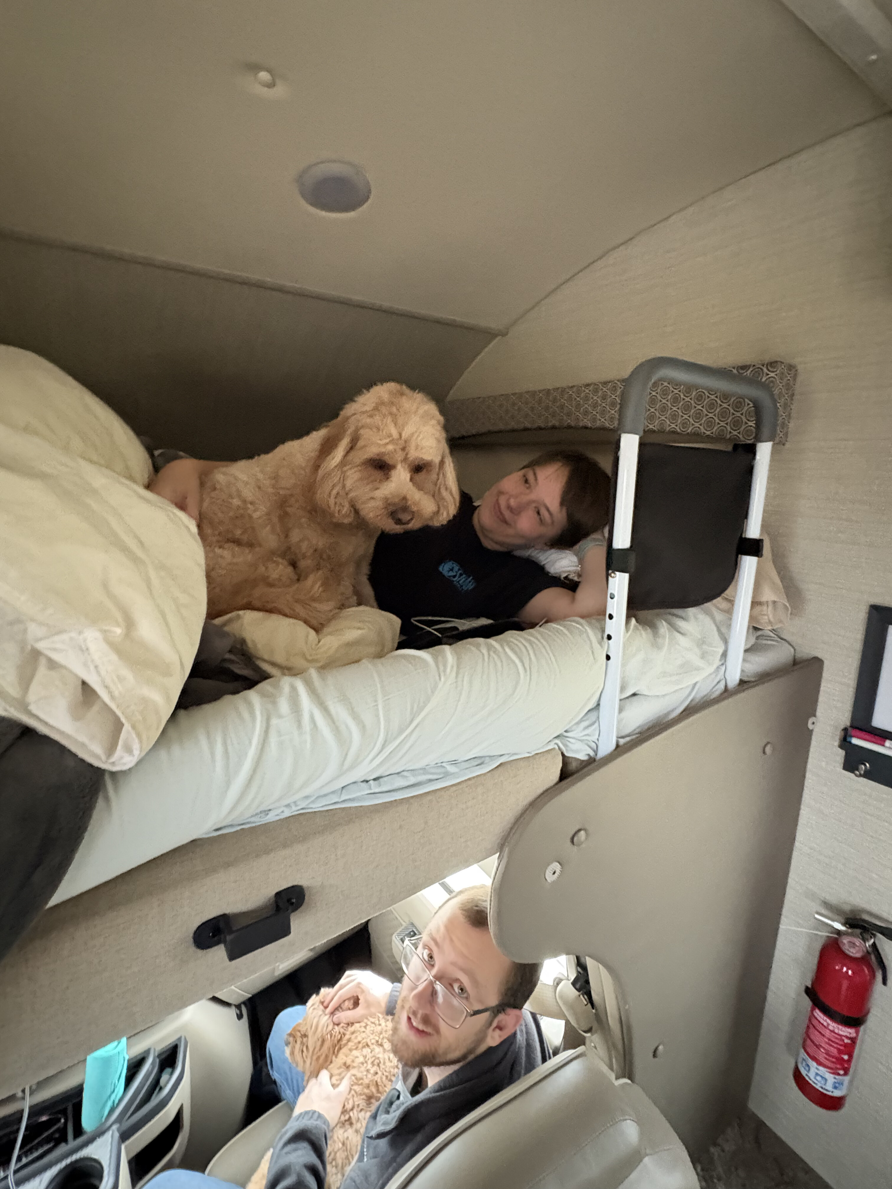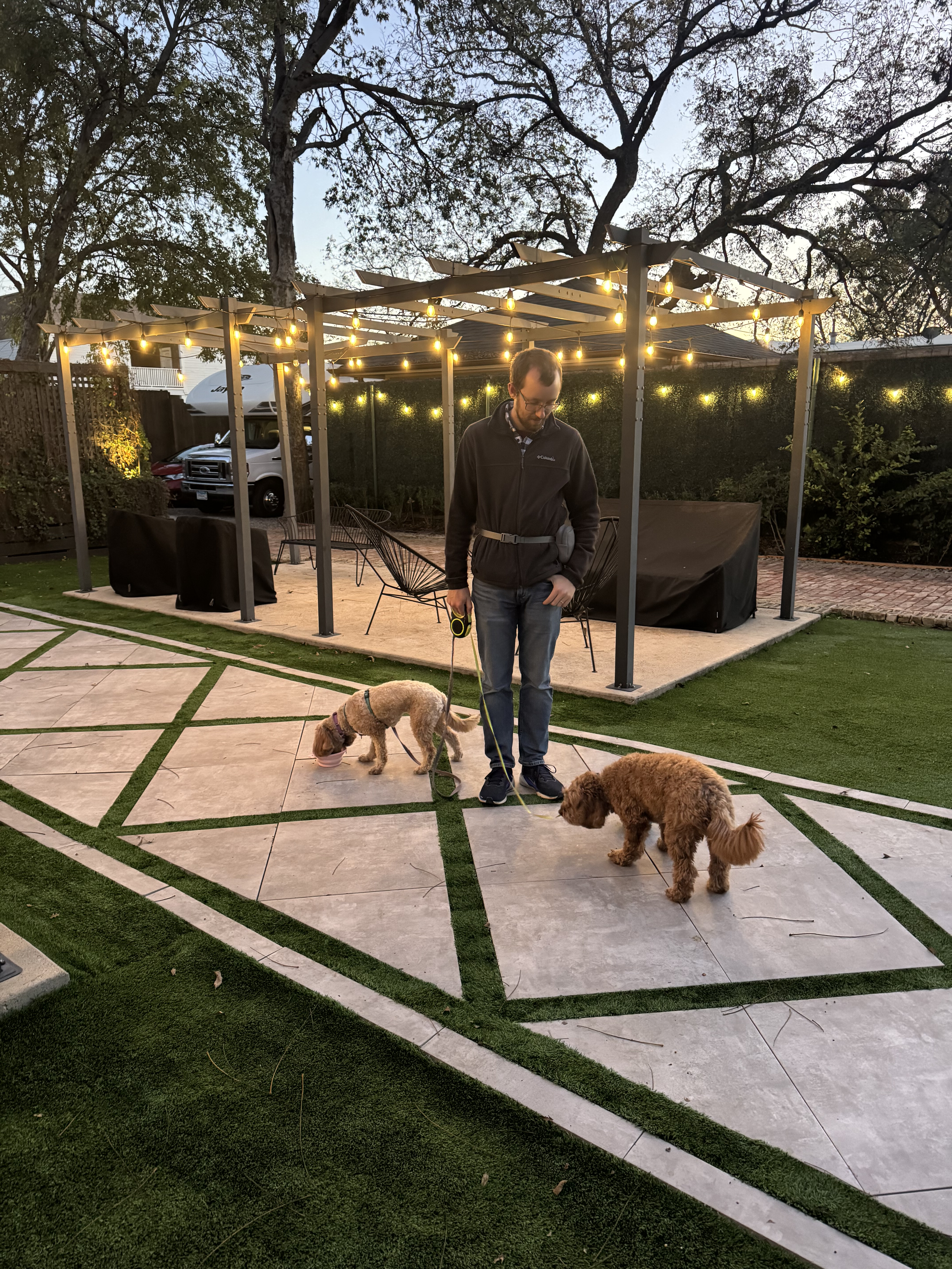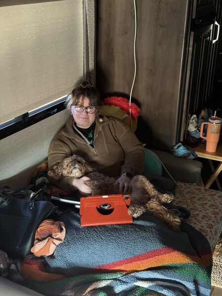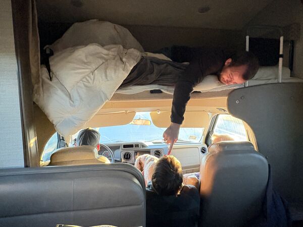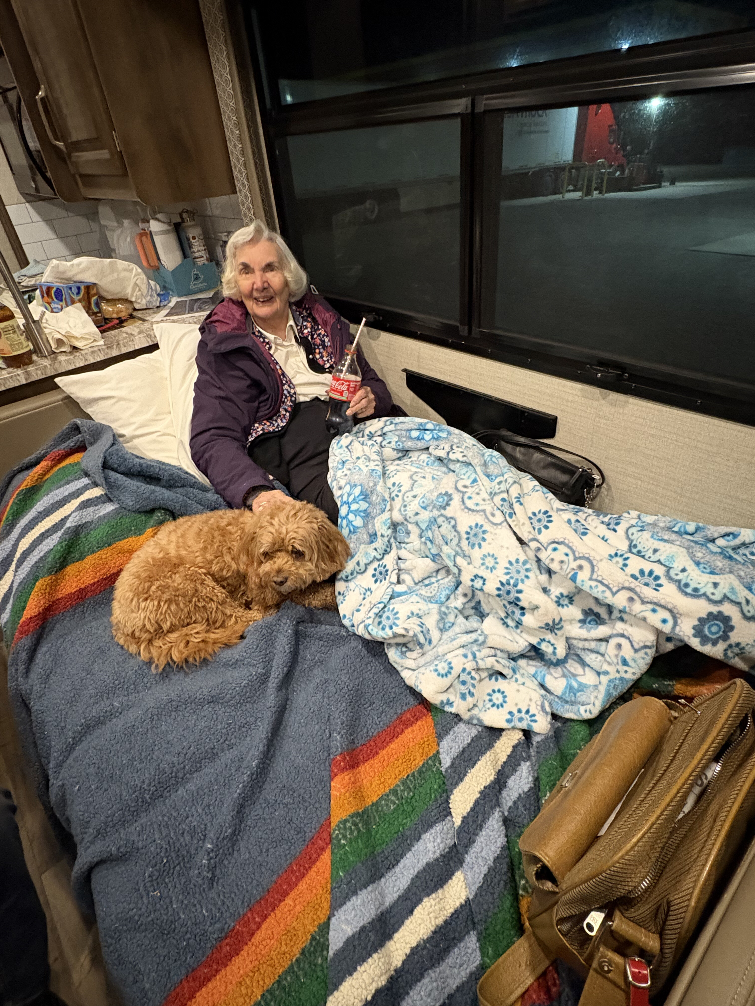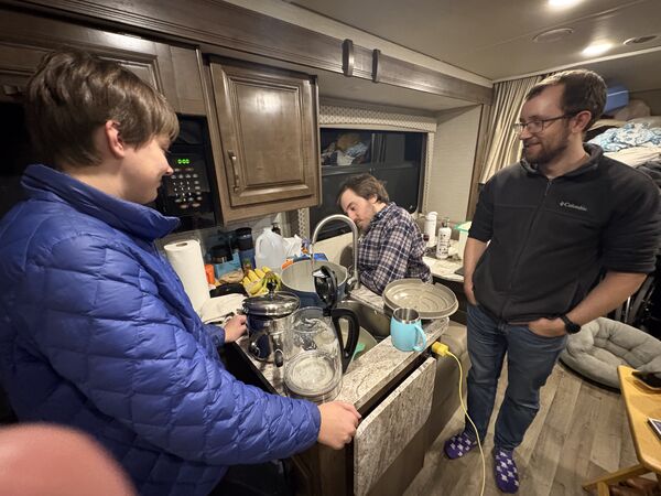 We went to Texas for Thanksgiving! Seven of us and two dogs loaded into Käthe’s parent’s RV and headed south. We left Saturday morning, stayed overnight in Vinita, Oklahoma, and then kept cruising until we made it to Ray Roberts State Park that evening. Mabel did much better on this trip than the one in August and Bodhi is a pro at RV travel at this point. We spent a few nights at the campsite (that had the bravest deer we have ever encountered) before heading into Dallas.