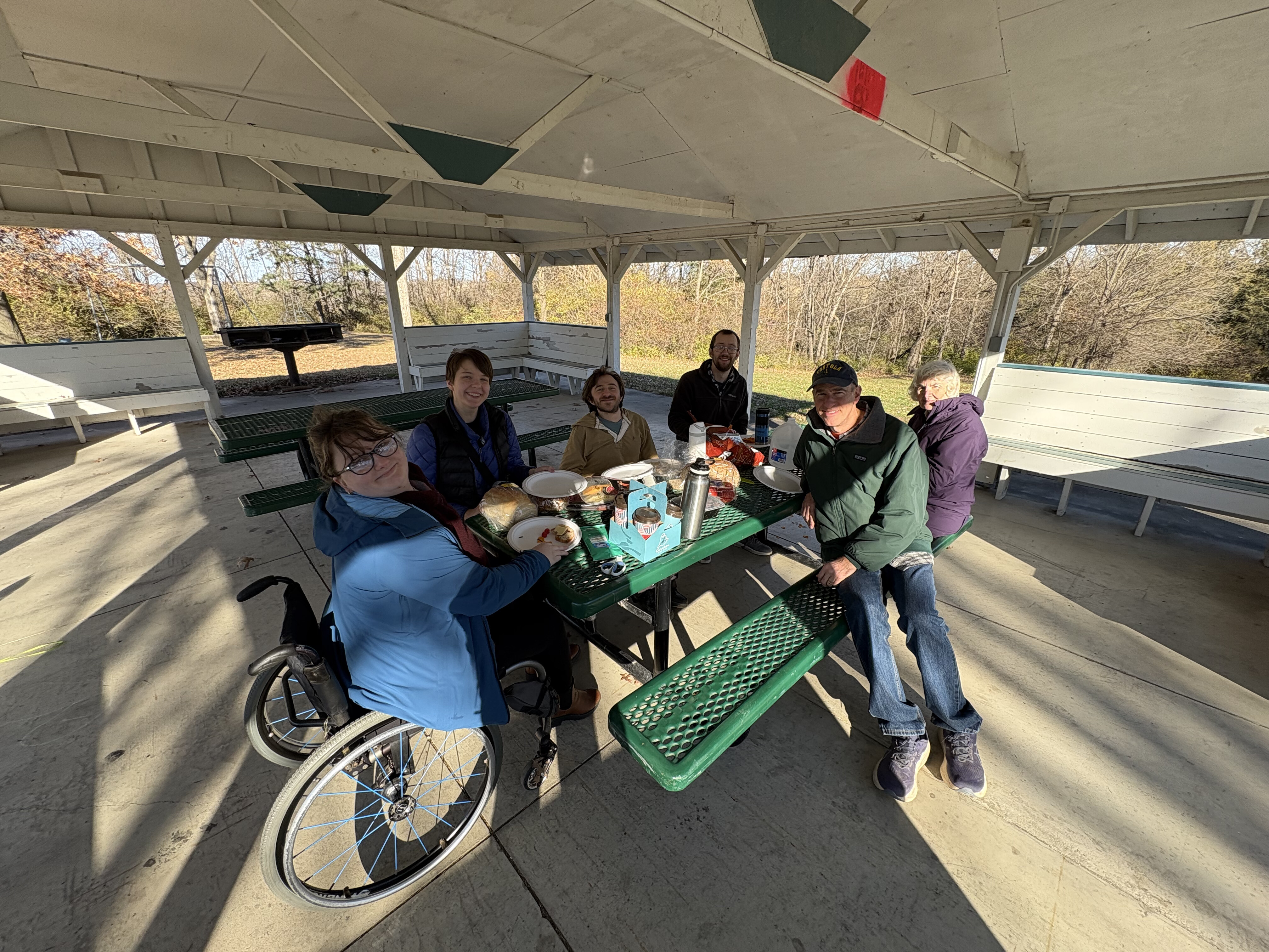 That afternoon, we had some decisions to make: There was a snowstorm heading towards the midwest that looked like it was going to pretty much shut down Iowa, which unfortunately is a pretty good chunk of the drive home. Chandler and Greg sat down with some weather graphs (or something), did some figuring, and determined that we should either leave promptly or wait until Sunday to start getting home. Of course, leaving Sunday would mean driving in slightly clearer but still snowy roads, which no one was particularly excited about, as well as potentially impacting work schedules. With those as our choices, we decided our best course of action would be leaving at 6PM on Thanksgiving day. Thankfully, the main meal was planned for 2PM, so we were able to stay for the most important part before we hastily finagled the RV out of the extremely tight courtyard and began our trek back to MN.