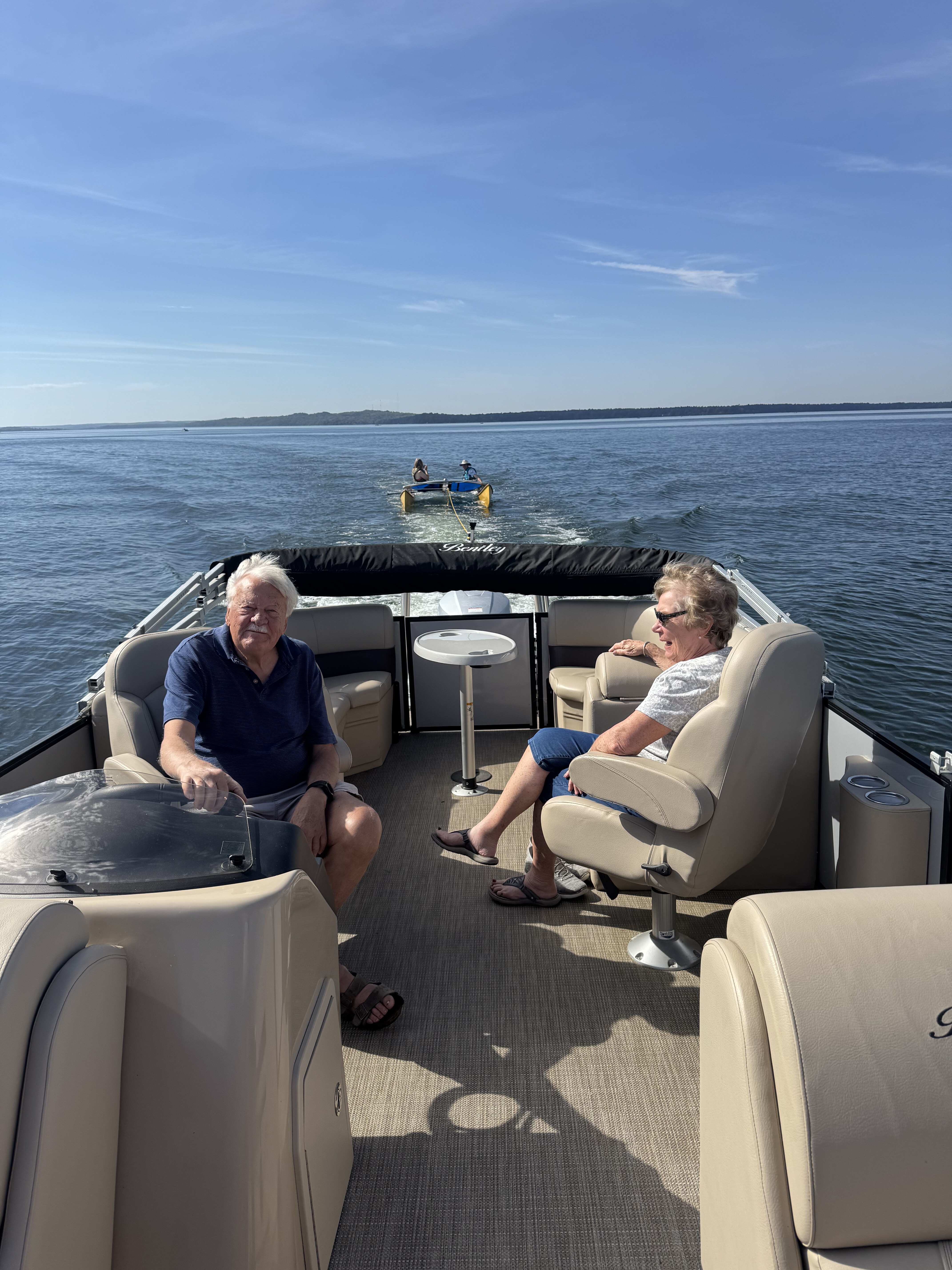 After dinner, Mom and Dad were putting gas in the boat (that we obviously took over instead of driving a car), I was in the bathroom, and Melanie stopped to say thank you to the other table for being such good sports and for having fun with it. They get to chatting asking where we're staying and Melanie has no idea so she was like "uhhh... the Bottemillers?"not expecting anything from that but they went "NO WAY YOU’RE OUR NEIGHBOR!!"