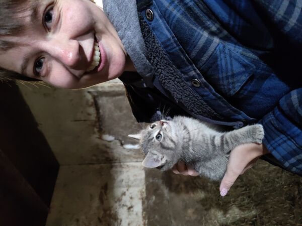 Käthe took her first ride in a Big Tractor! We joined Eric for some field work after harvest, and afterwards got to meet five of the farm cats.